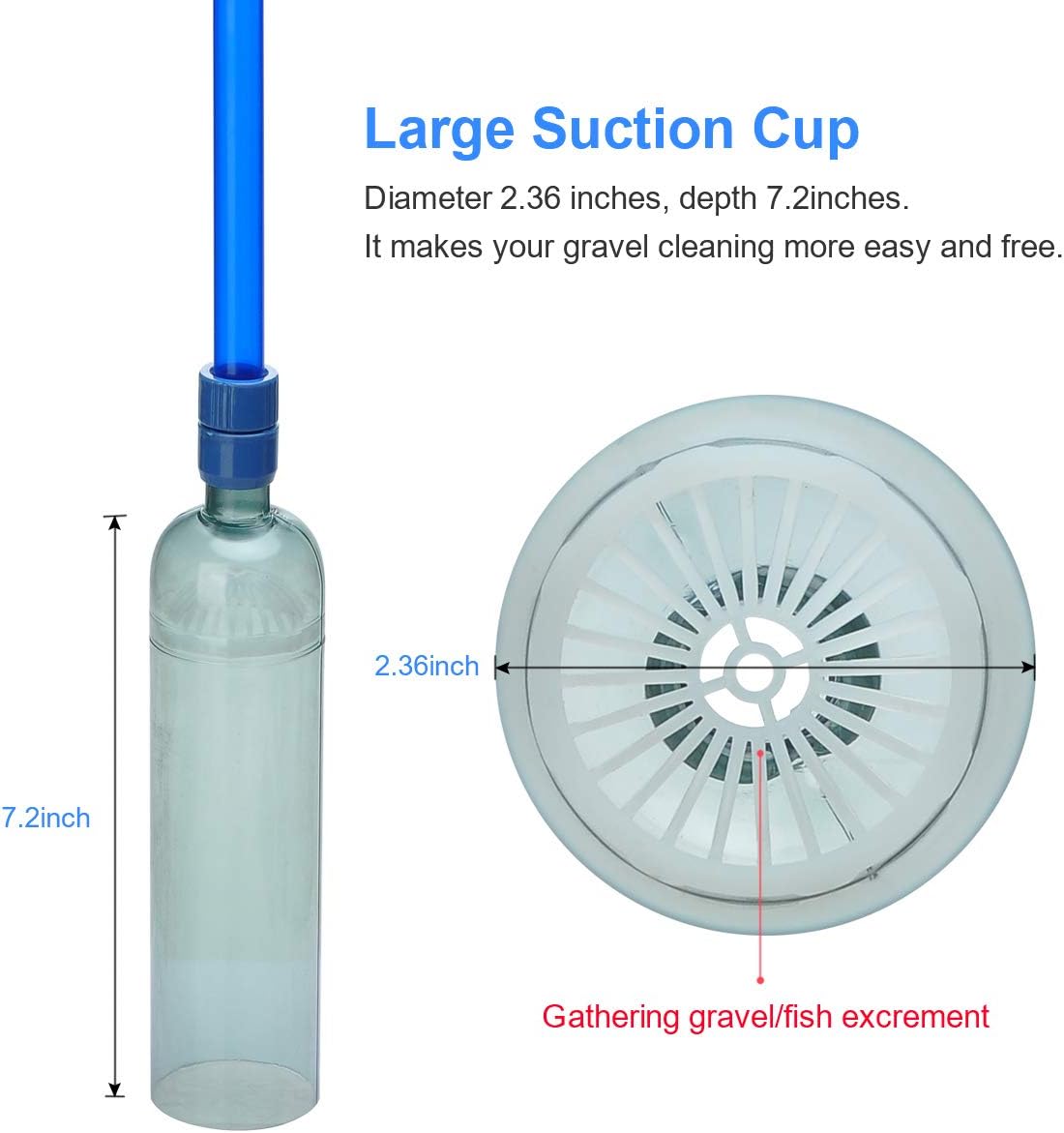 The water inlet designed as a suction cup and comes with a integrated filter net,which can prevent juvenile fish,small fish or fine gravels from sucking out of the tank.It also prevent large gravels being sucked out and block the whole siphon system.