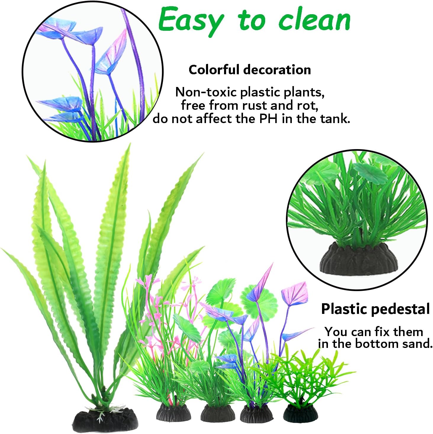 High Quality Material: Non-toxic plastic plants, free from rust and rot, do not affect the PH in the tank. Each plastic plant has a plastic base, and you can fix them in the bottom sand; Arch bridge is made from resin, safe, no sharp edges. Will not cause any pollution and damage to living things. Flat bottom design, just put it in the water tank or aquarium easily and stably stand in the aquarium.