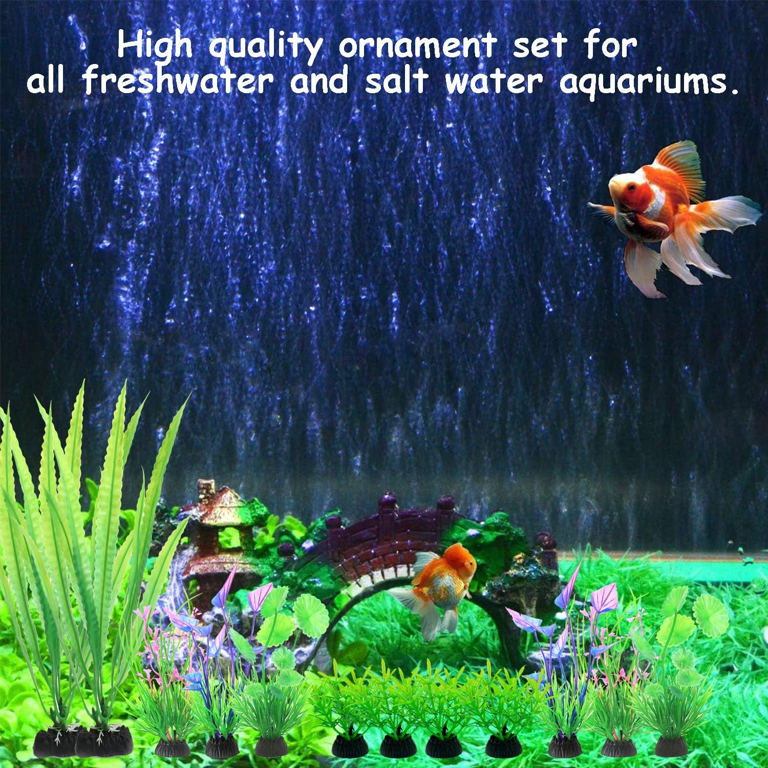 Wide Applications: High quality ornament set for all freshwater and salt water aquariums. Arch bridge can also be placed in an outdoor small landscape. Plastic plants can also be used as accessories in fairy garden. The set can be as a gift for lover, family member or friends who have a fish tank, especially who also like DIY and home decorating. Change your aquarium into a beautiful scenery.