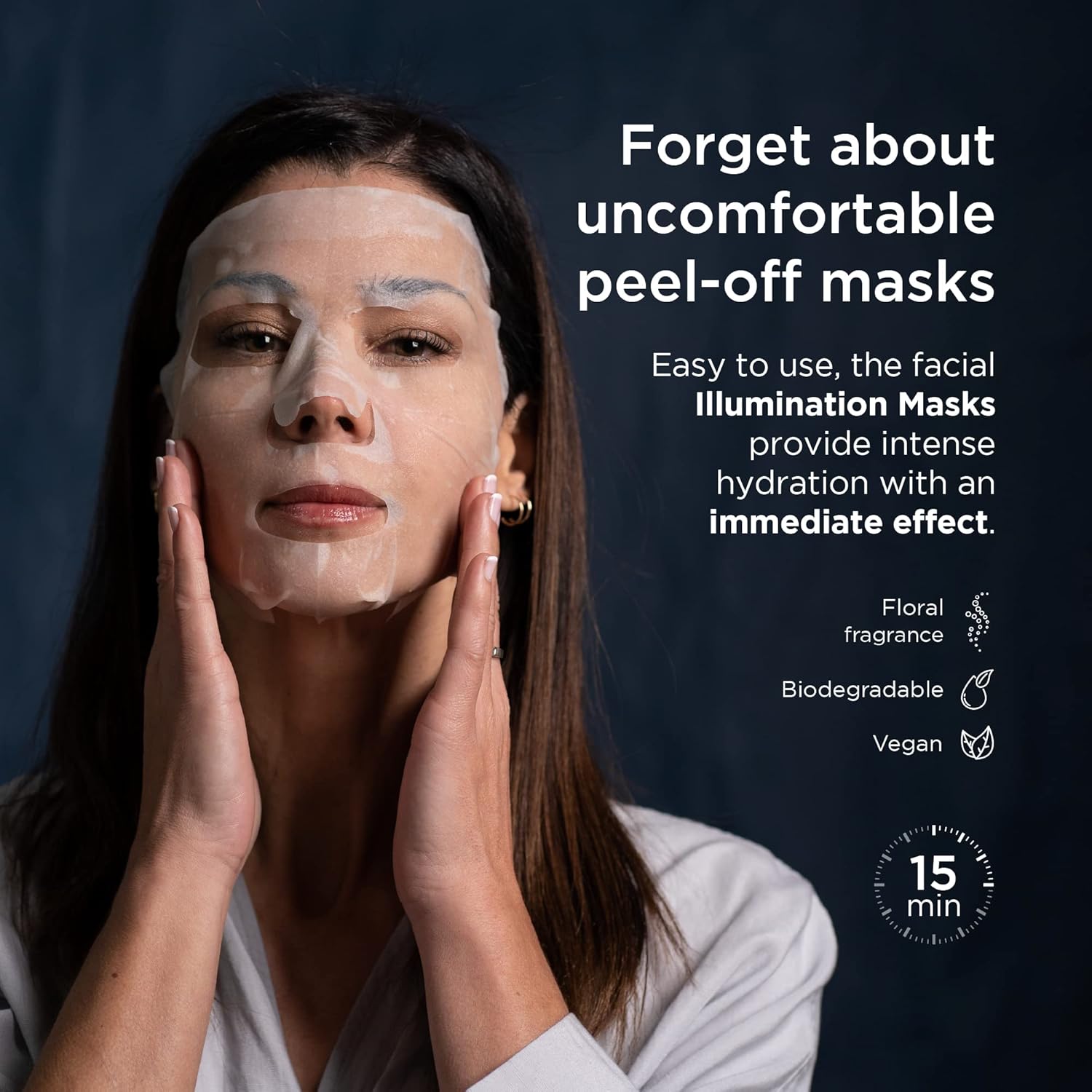 How and when to apply them? Apply the tissue face mask to your clean, dry face and leave on for 15 minutes, then remove. No need to rinse! Use two or three times a week