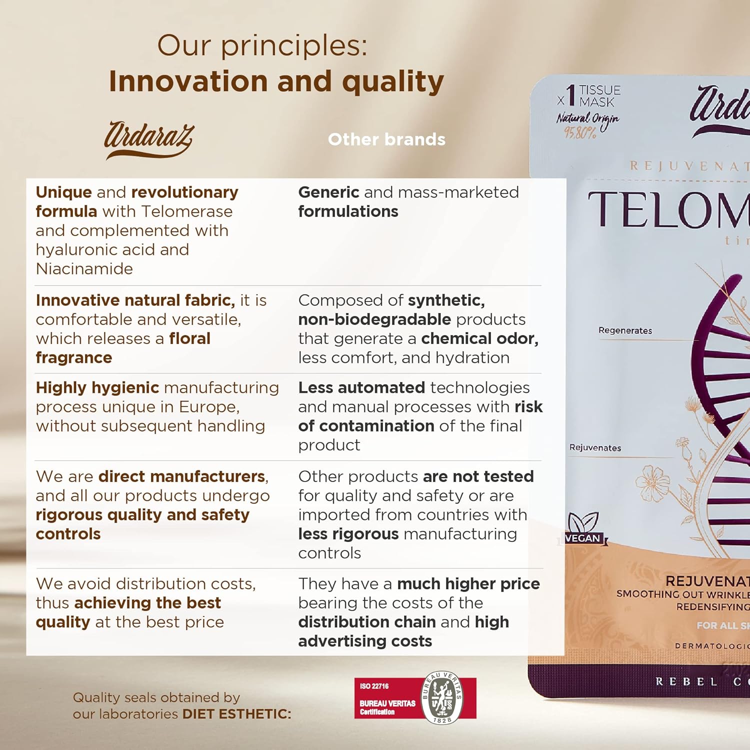 The Ardaraz brand is manufactured in Spain in compliance with all European regulations that guarantee safe, high quality products. Cruelty Free, we use vegan raw materials and recyclable materials to reduce our environmental impact.