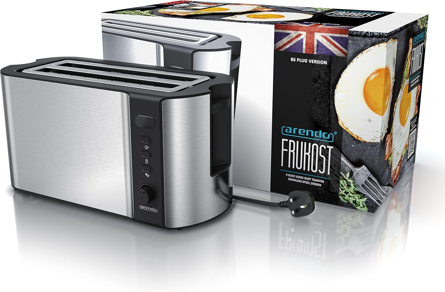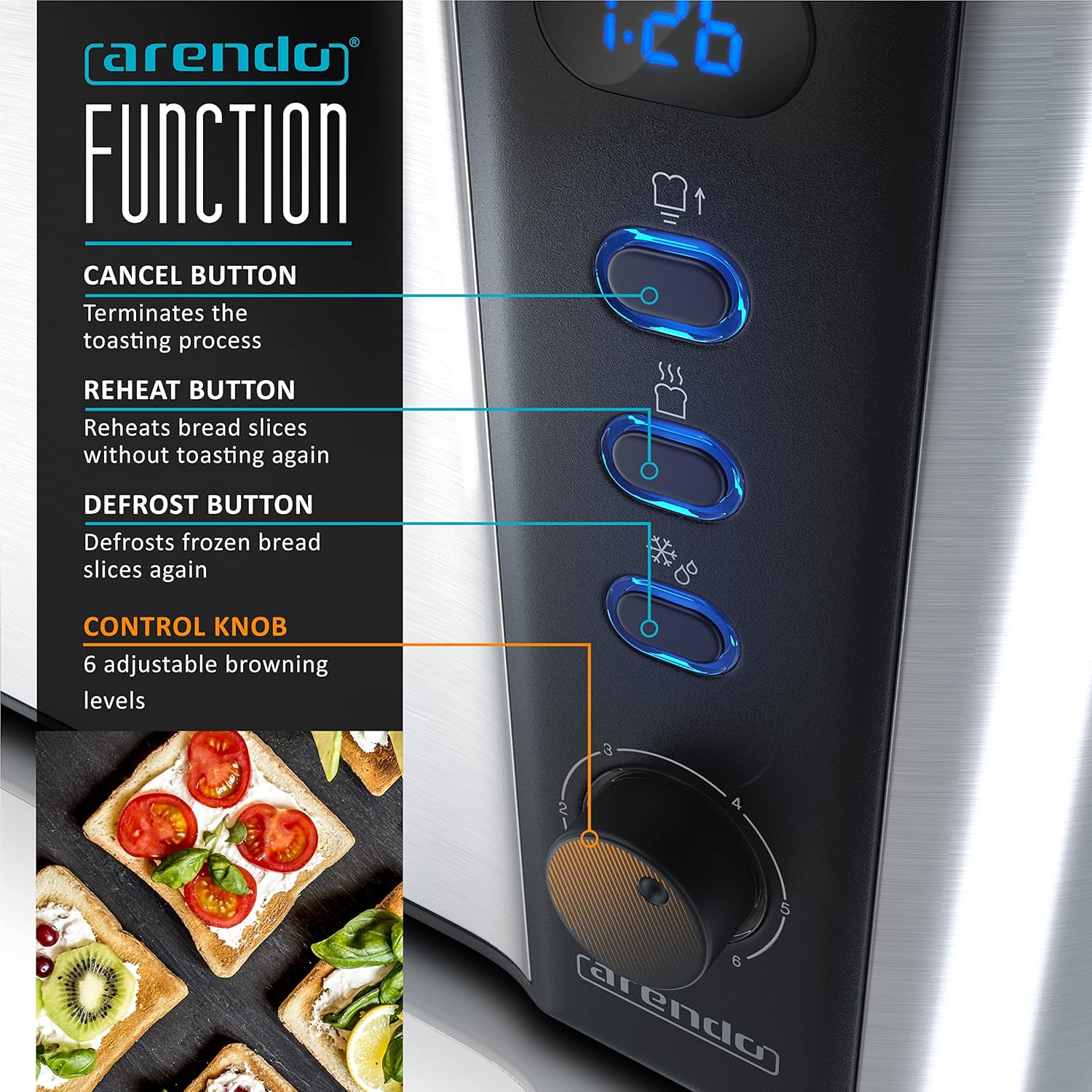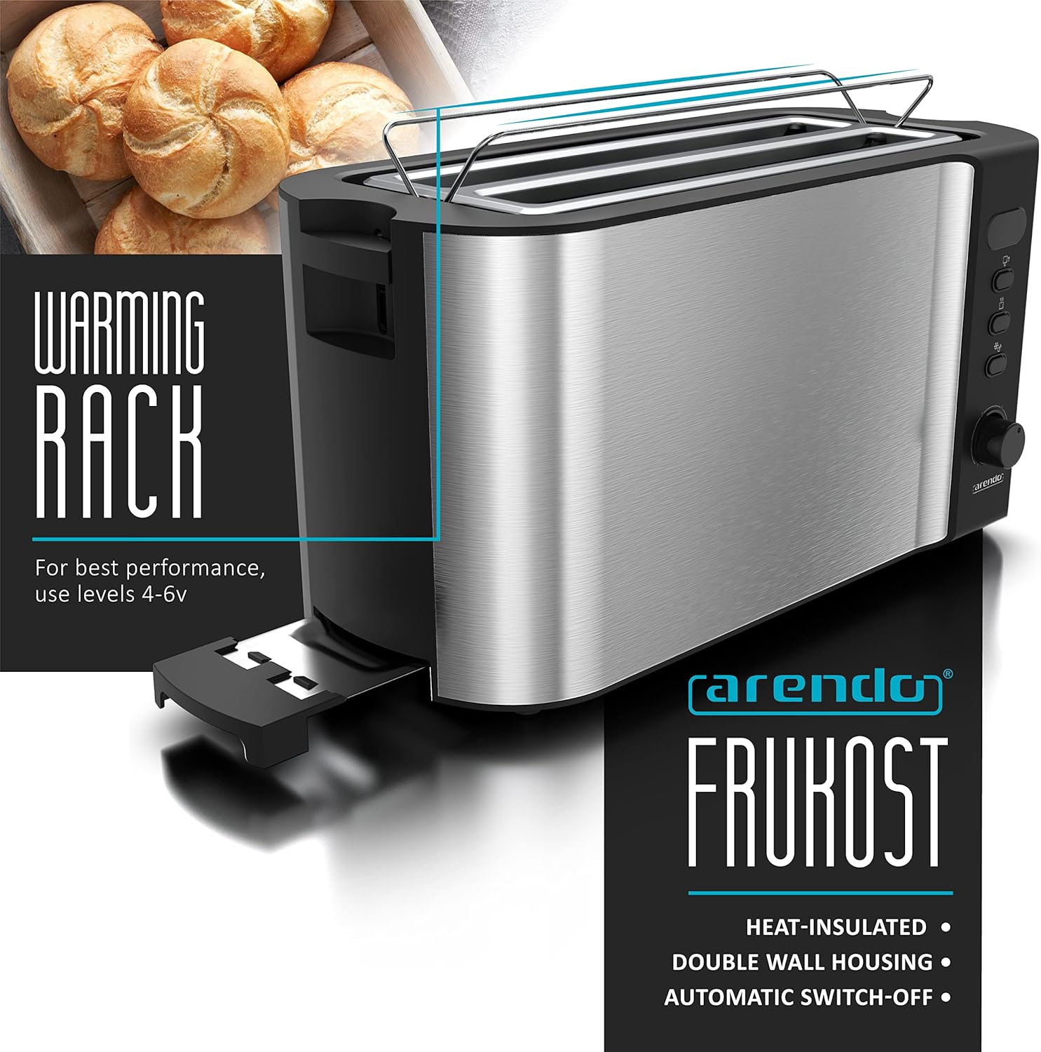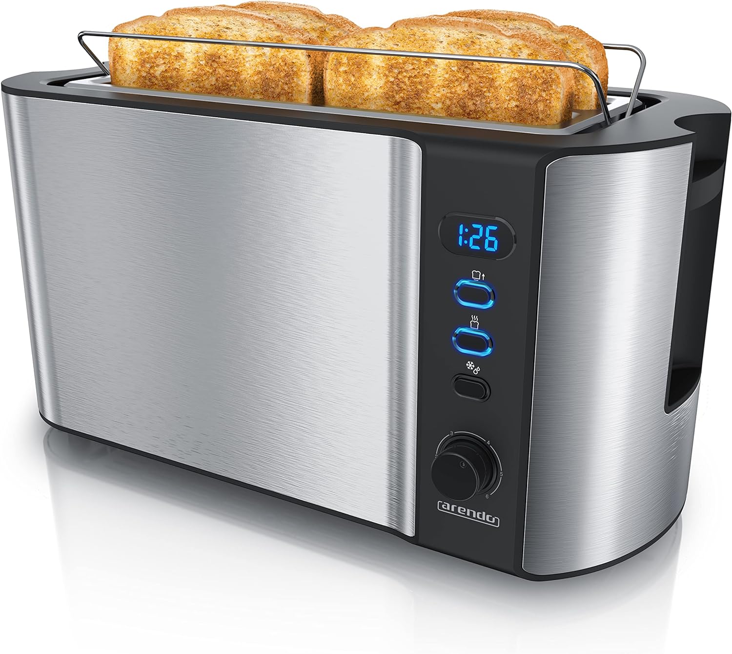 Arendo – Frukost 4 slice long slot toaster – double wall housing – with warming rack – 6 browning settings – auto bread centring – reheat defrost cancel function– remaining time display