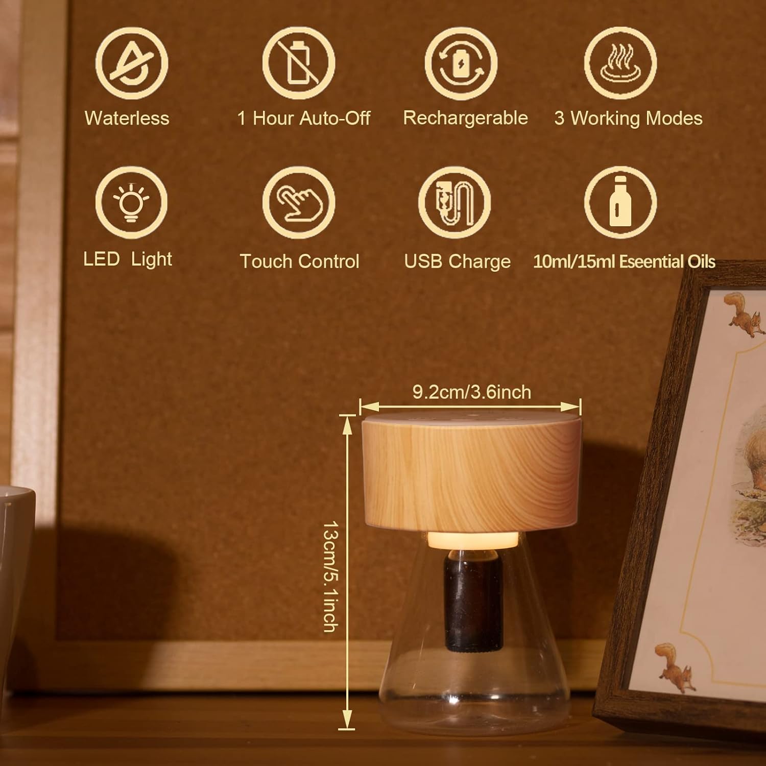 Aromatherapy Diffuser, Minidiva Essential Oil Diffusers, with LED Night Light, Professional Nebulizing Technology, Super Quiet, Waterless, Portable, DIYable (Woodgrain)