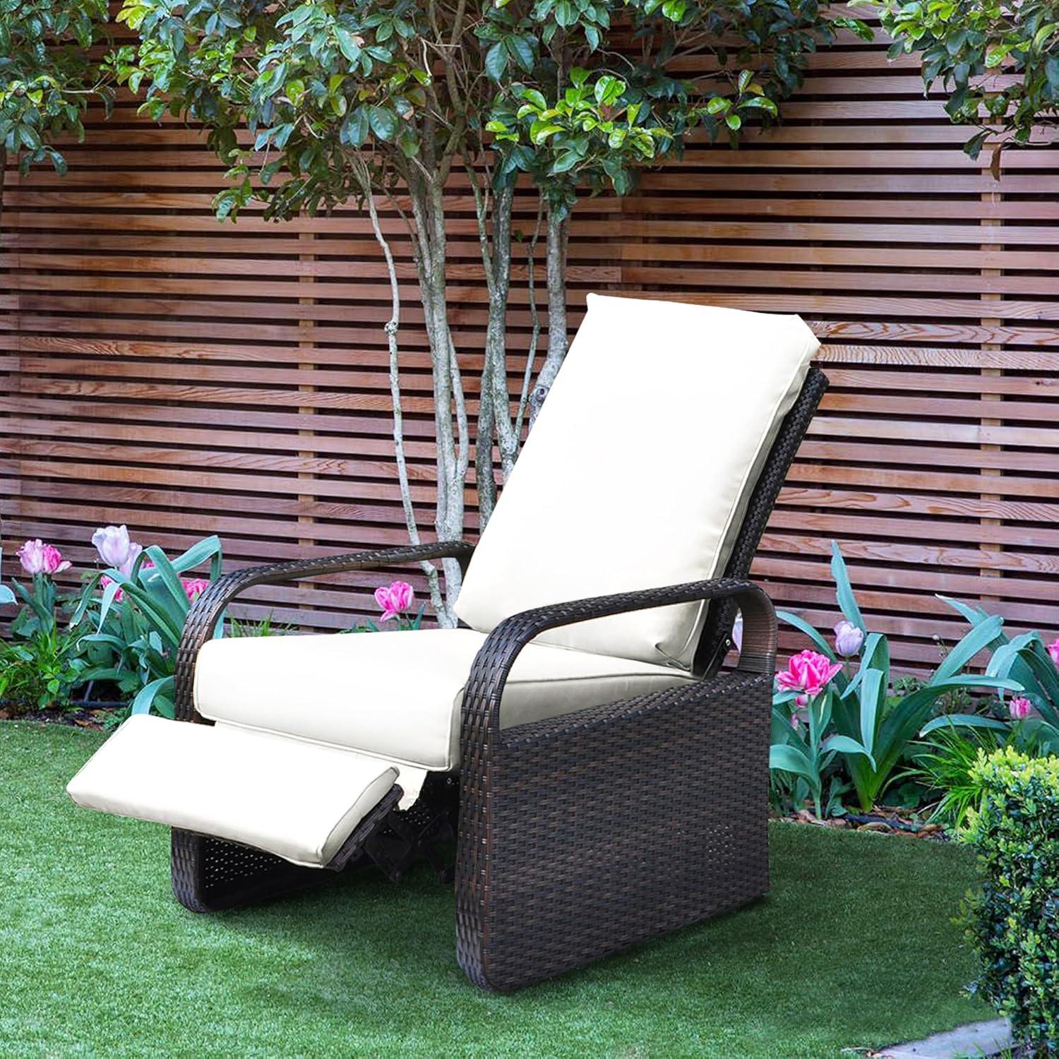 ART TO REAL Garden Recliner Chair with Brown Rattan,Patio Reclining Position Adjustable Height Lounge Armchair,Hand-woven PE Wicker with Removable Thickness Cushion,Aluminum Frame (Beige)