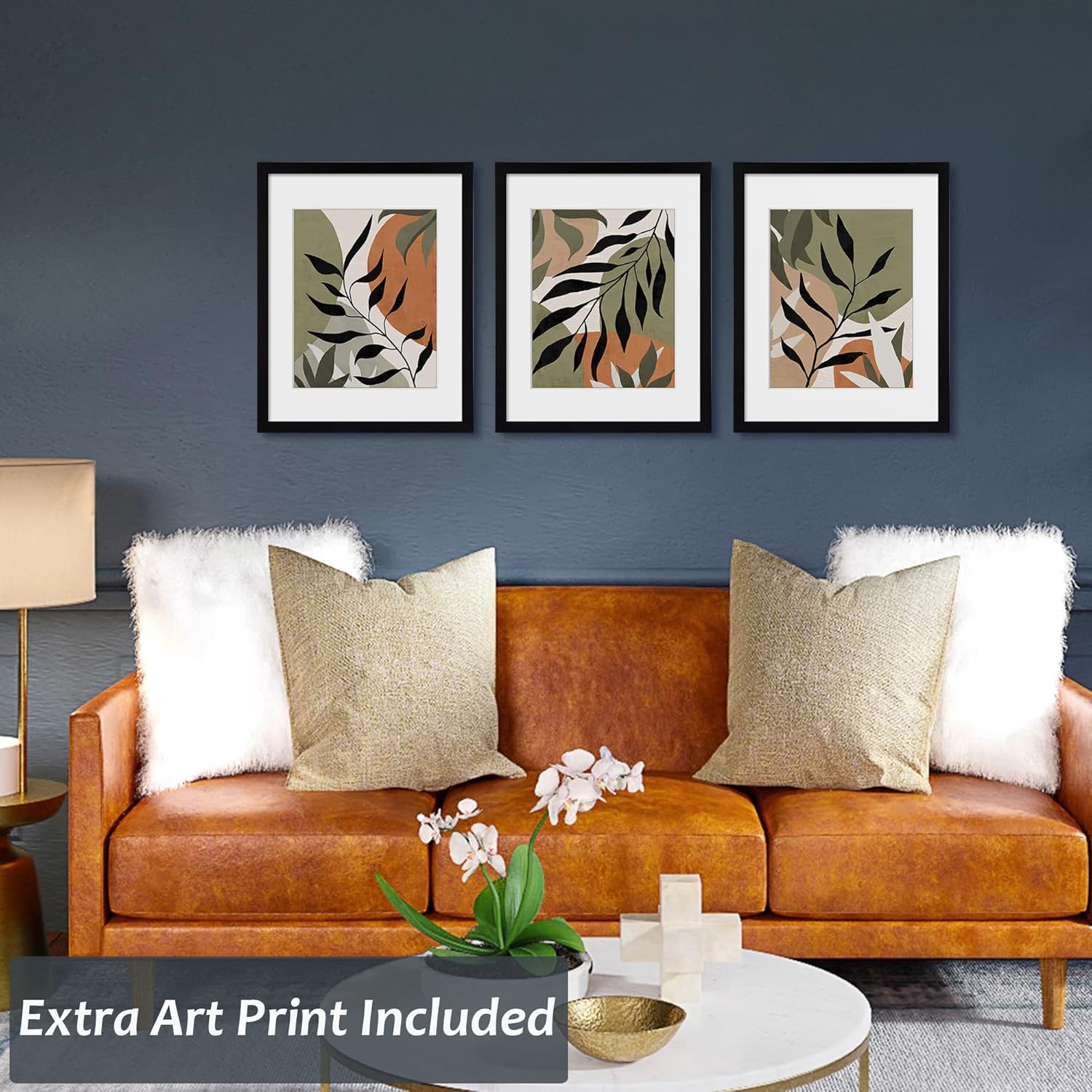 ArtbyHannah Framed Abstract Wall Art 3 Pack 11×14 IN with Brown Black Tan Blocks Prints for Wall Decor with Black Frames 29×36 cm, Extra Art Prints of Botanical Included