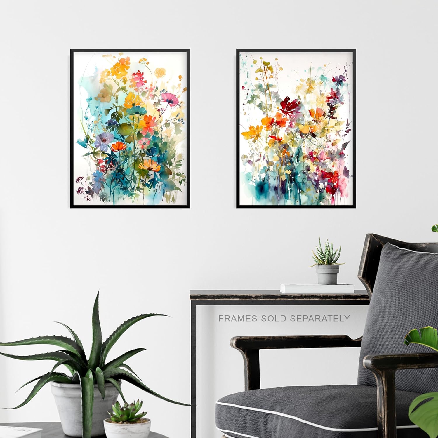 Artery8 Set of 3 Wildflowers Colourful Watercolour Floral Artworks Spring Flower Field Unframed Wall Art Living Room Poster Prints Pack