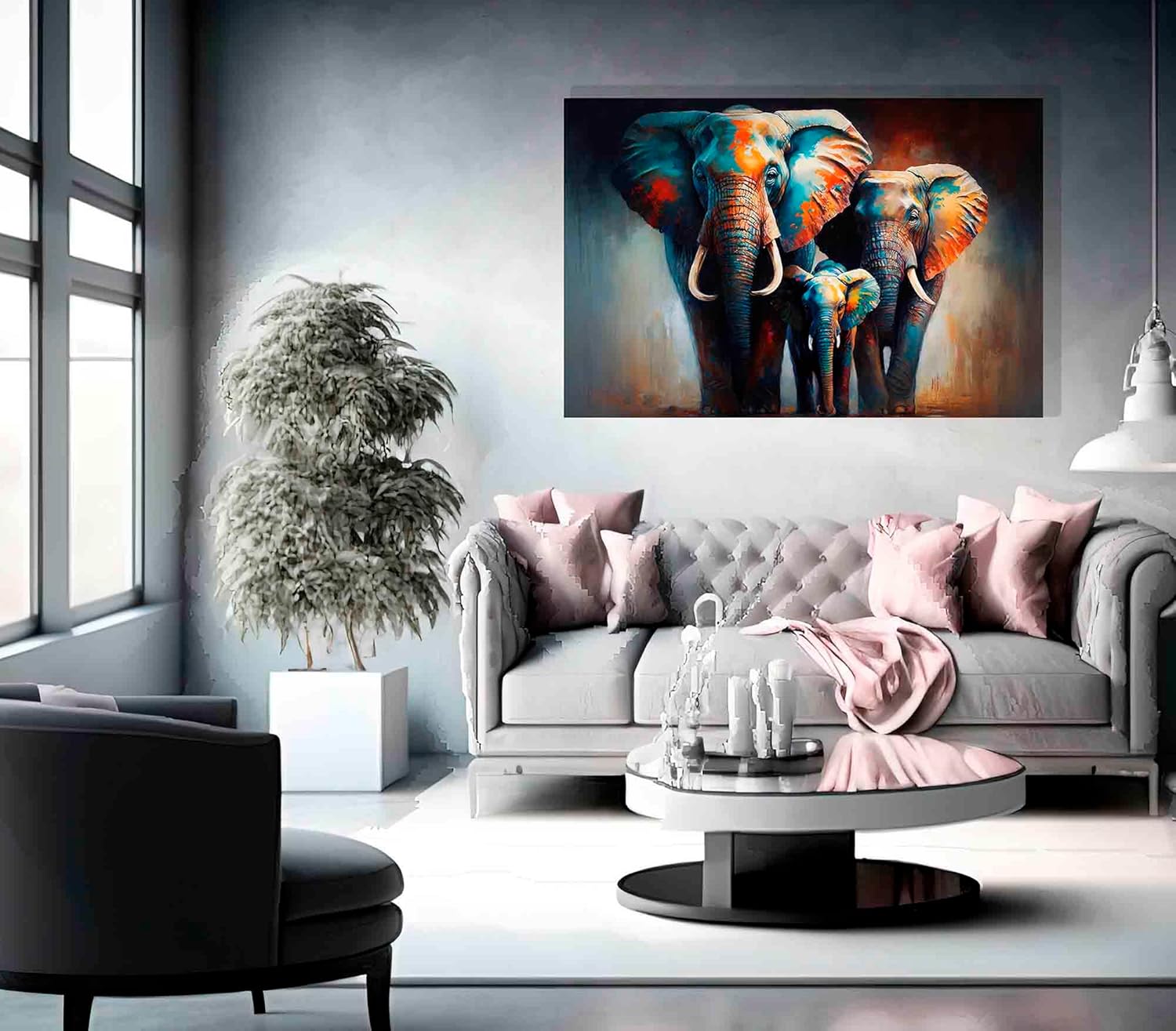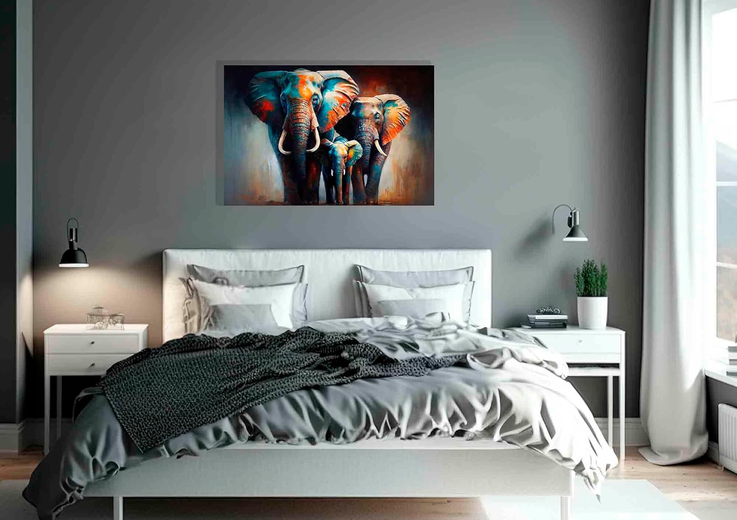 Artley Prints – Elephant Family in the Wild Colourful Canvas Wall Art for Living Room – Framed Abstract Pictures to Hang in Bedroom, Hallway Extra Large 101 x 76cm (40 x 30 inches)