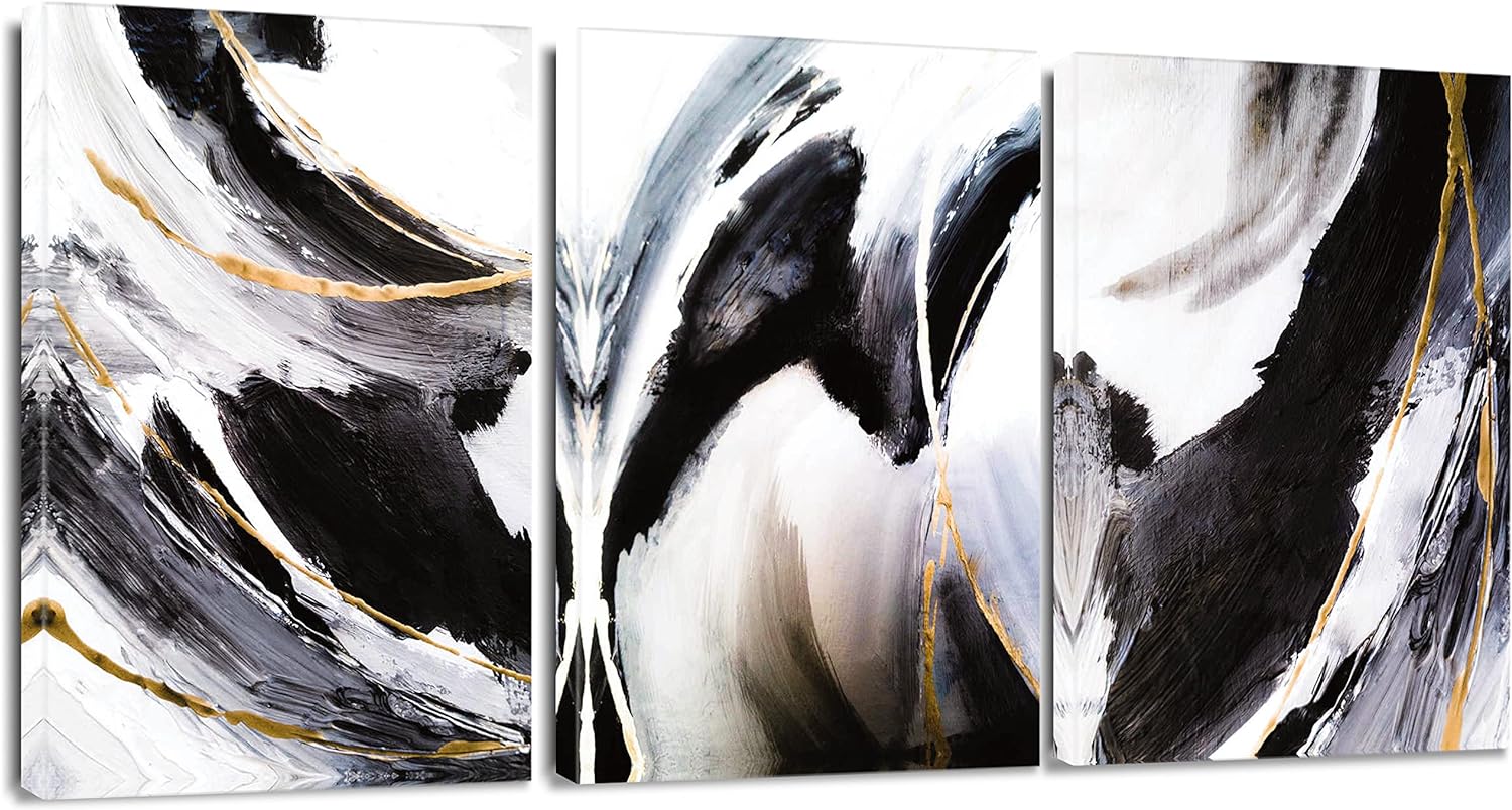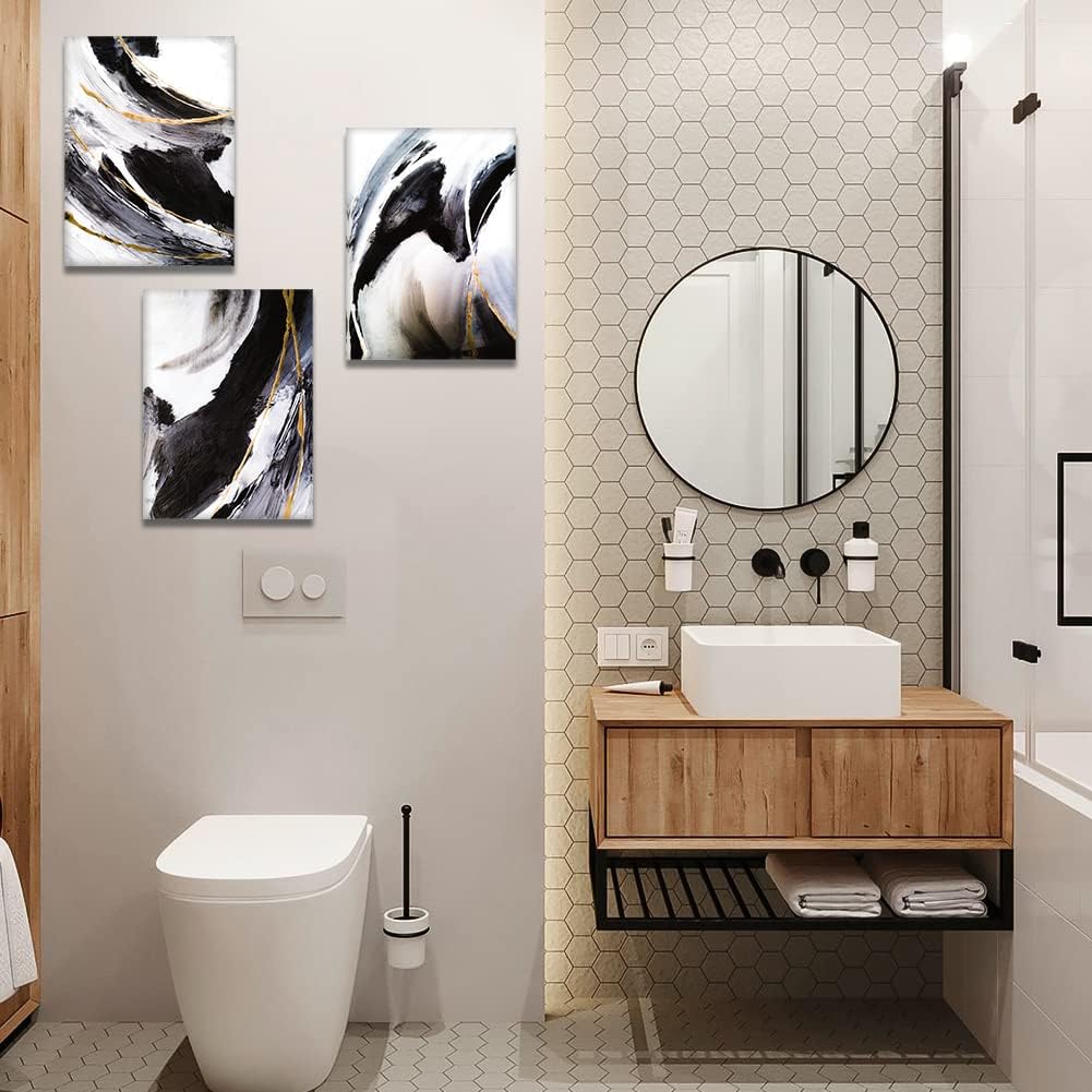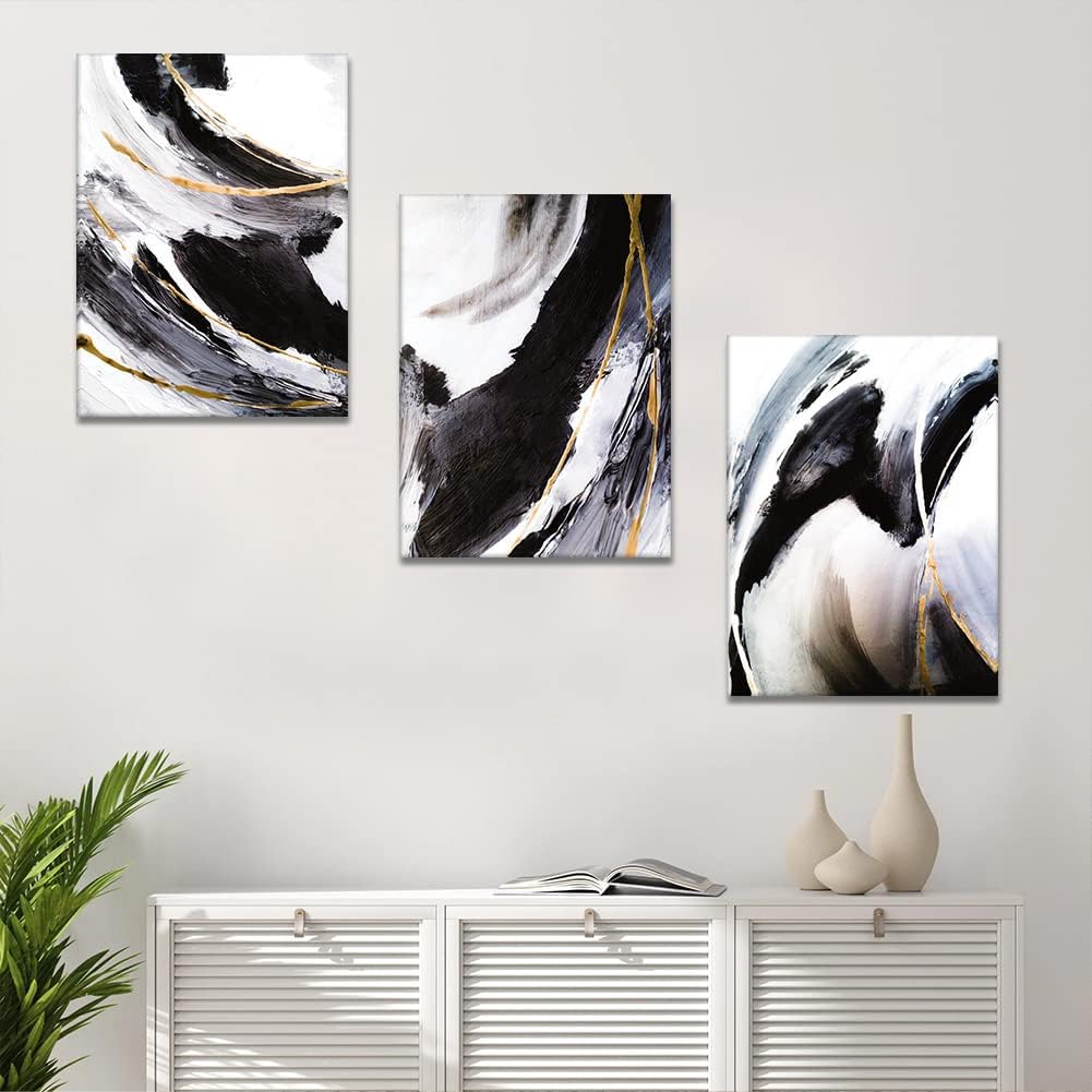 Artscope 3 Pieces Abstract Wall Art Canvas Prints – Marble Black and White Fluid Ink Picture Painting – Modern Wall Artwork Framed for Gifts Bathroom Living Room Home Office Decor – 30 x 40 CM
