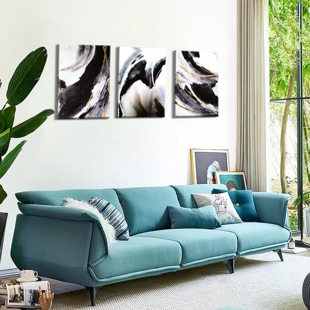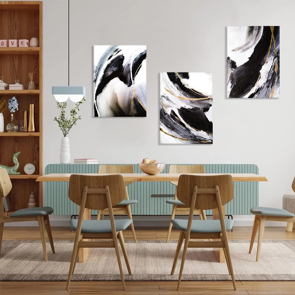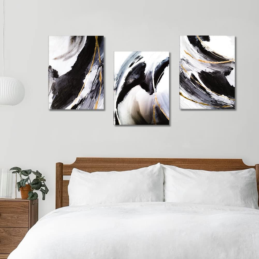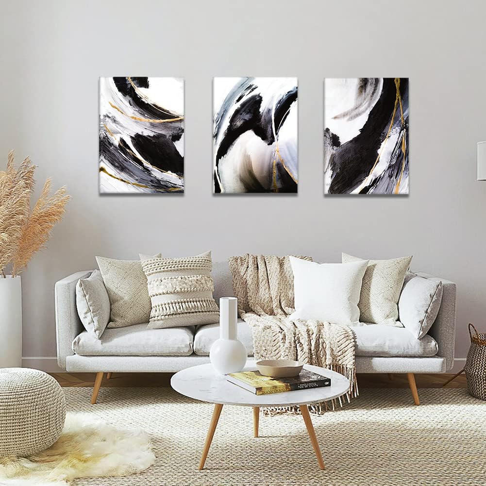 Artscope 3 Pieces Abstract Wall Art Canvas Prints – Marble Black and White Fluid Ink Picture Painting – Modern Wall Artwork Framed for Gifts Bathroom Living Room Home Office Decor – 30 x 40 CM