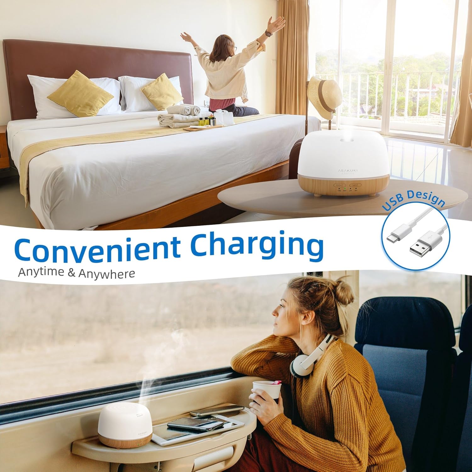 Easy Opreation: The included remote control allows you to easily control the light, mist mode, and timer settings of the diffuser from up to 5 meters away. It is powered by a USB connection, ensuring you can use it anywhere in your home or office, even with a power bank or laptop.
