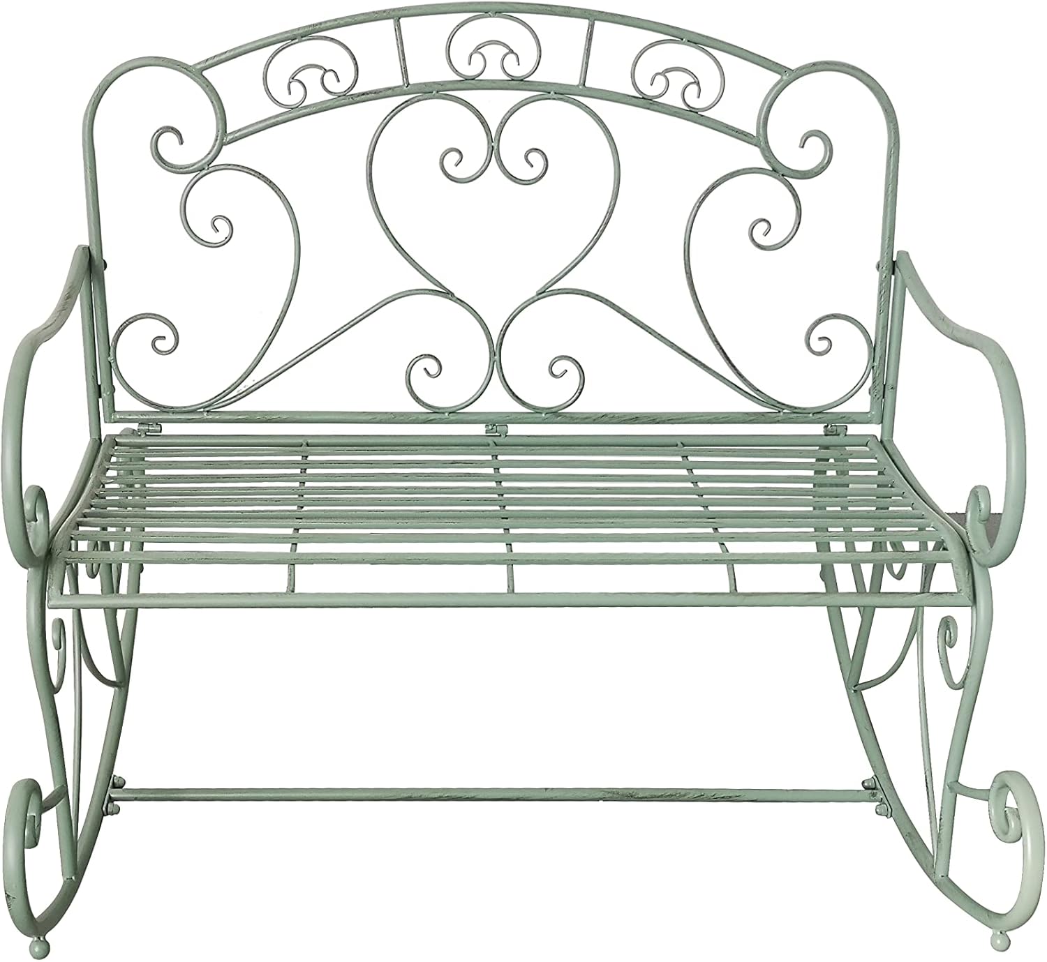 Add an ornamental element with this rocking bench garden accent. Place it on the porch for a country farmhouse design layout or in the garden under your favorite tree for a cooling shade sit.