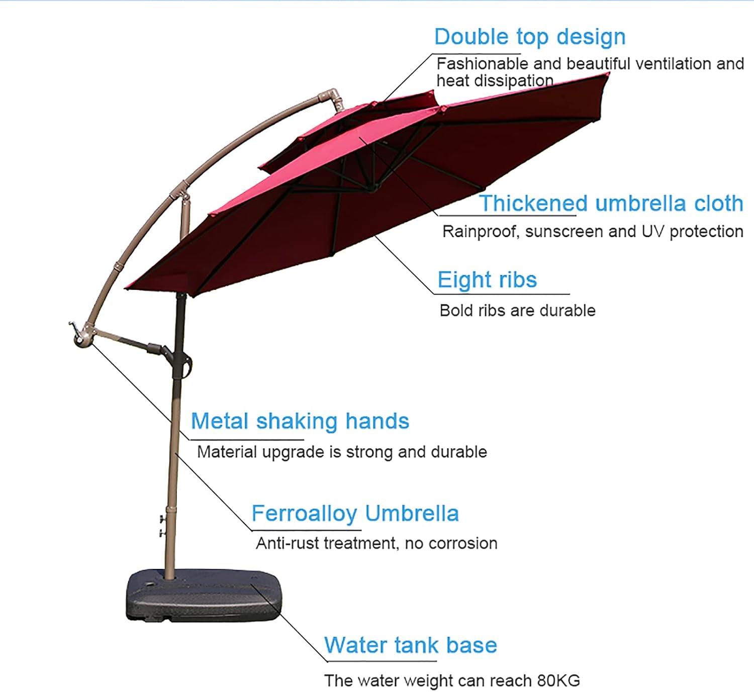 ASumPio 9ft / 2.7m Cantilever Umbrella Garden Banana Parasol Patio Hanging Sun Shade with Winding Crank & Tilt Function Sunscreen
