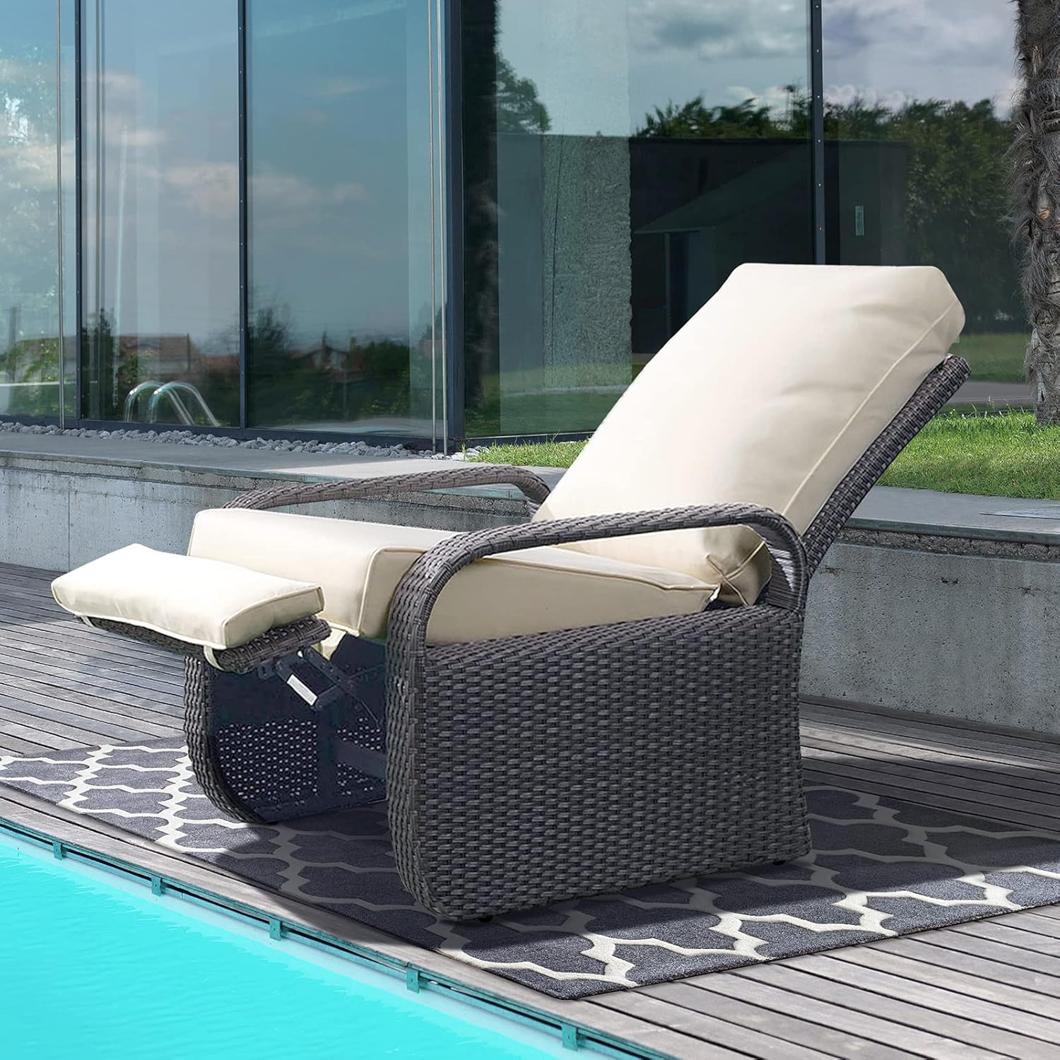 【3 Position Height Adjustable】Our garden recliner chairs motion furniture chair offers three height positions for customers to adjust. You can gently push the armchair back to 90, 120, or 160 degrees according to your preference. The footrest will come up with the backrest when you recline the chair, making it easy to operate and adjust manually.
