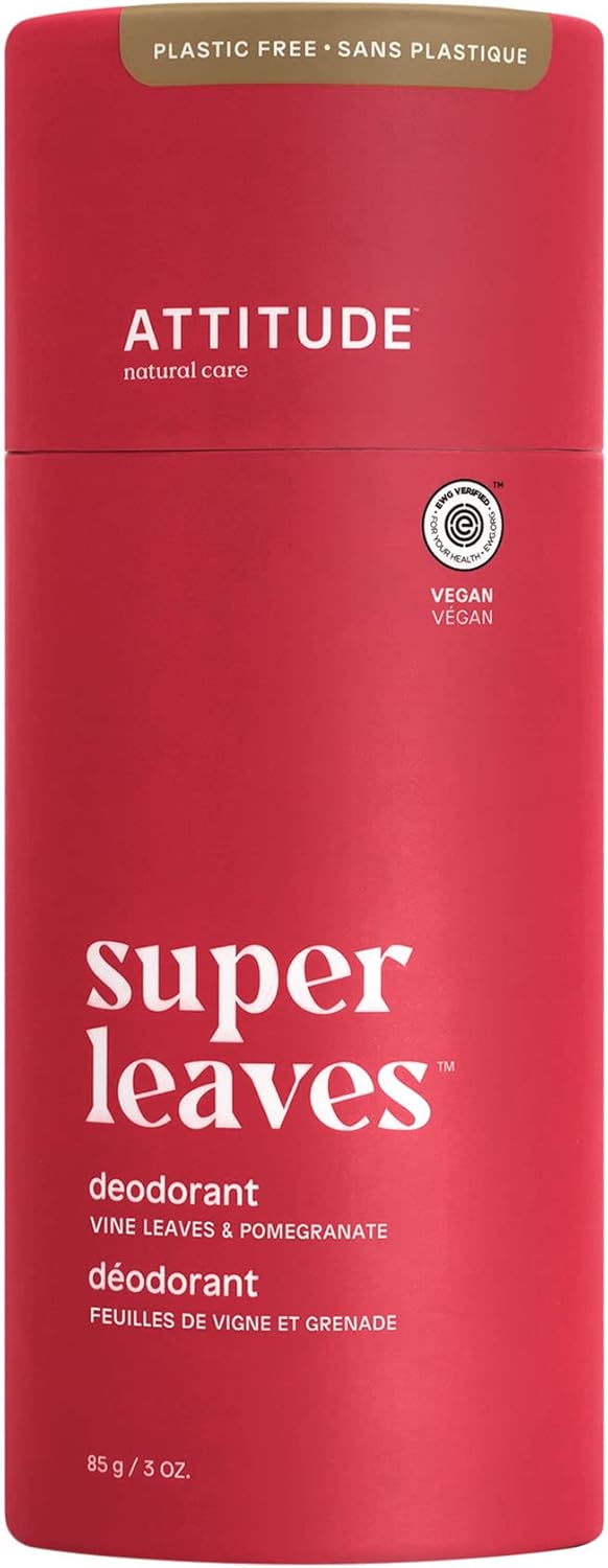 ATTITUDE Plastic-Free Deodorant, EWG Verified, Aluminum Free, Vegan Naturally Sourced Body Deodorants for Women & Men, Dermatologically Tested, Vine Leaves and Pomegranate, 85 grams