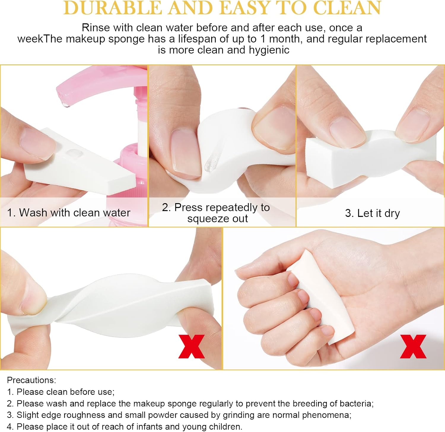✌【EASY TO USE】Our makeup sponge has uniform pore size and is not easy to powder. When it meets water, it becomes larger, helping the foundation to spread better and more smoothly, reducing dryness and peeling, and creating an even and charming makeup look! Whether you’re a pro or a novice, these makeup sponges will easily fit into your routine! If you have any questions, please contact our email, we will reply and solve your problem as soon as possible.