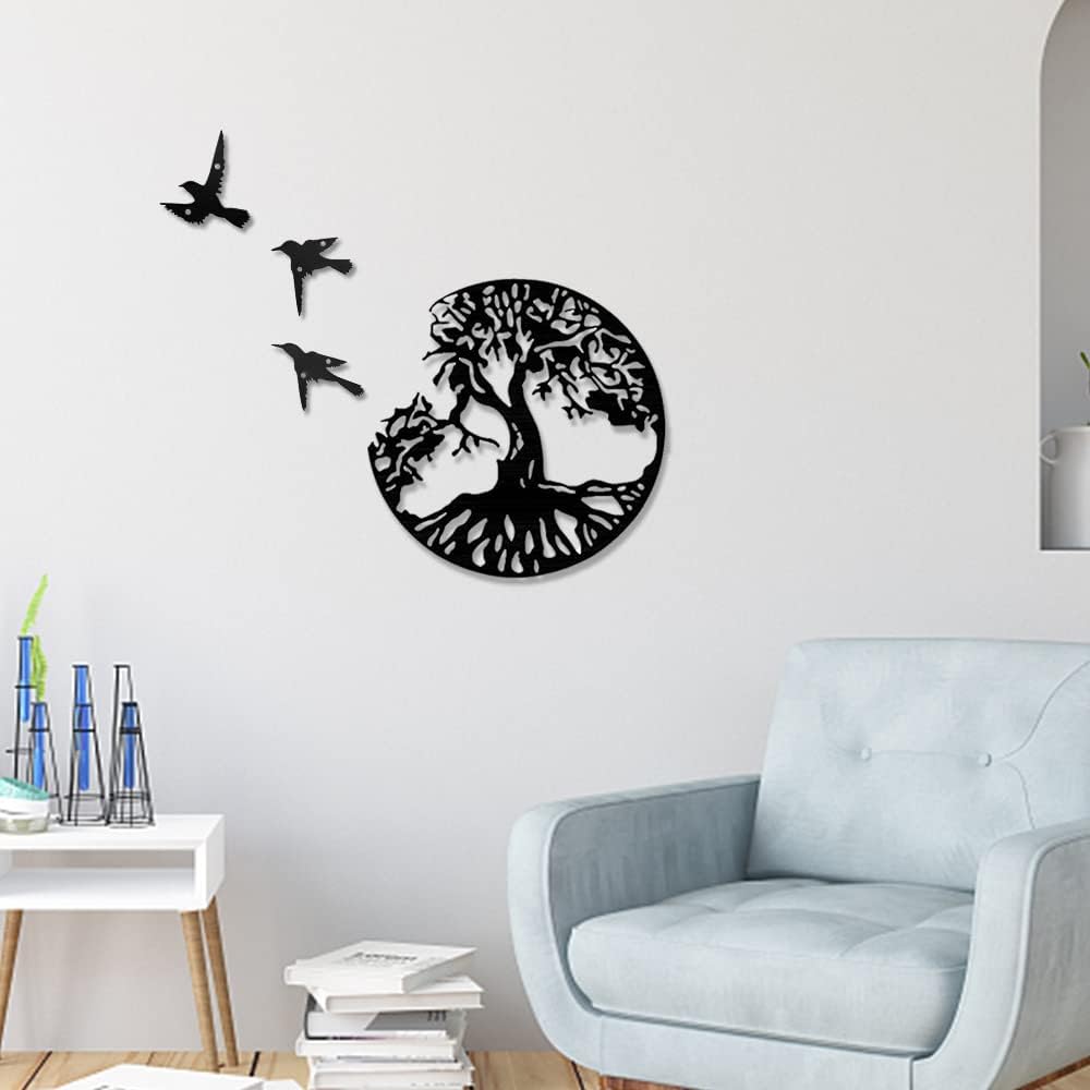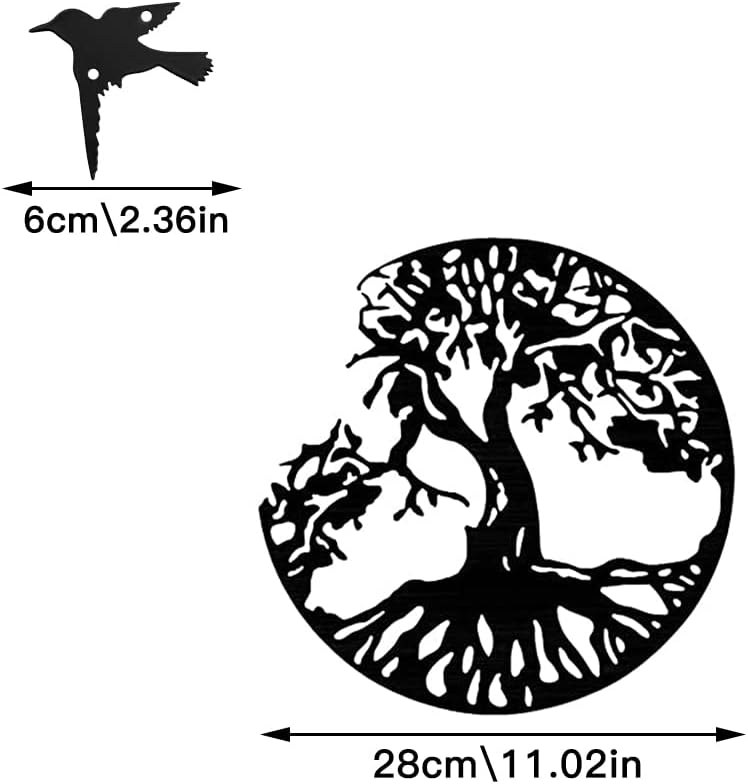 aupawdy Garden Wall Art Outdoor Metal Tree Life Metal Wall Art Tree Life Metal Wall Plaque Tree Metal Wall Hanging Decor Metal Wall Art for Living Room Bedroom Kitchen,28cm/11.02in, black
