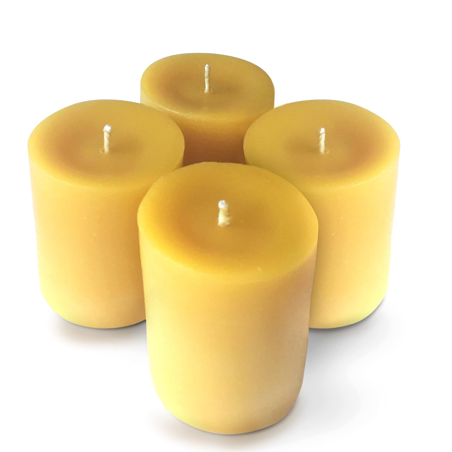 Aureate Candles | 4-Pack | 100% Natural Yellow Beeswax Votive Candles | Eco-Friendly Candle Storage Box | 12-15 hour Burn Time Each | Unscented | REFILLS