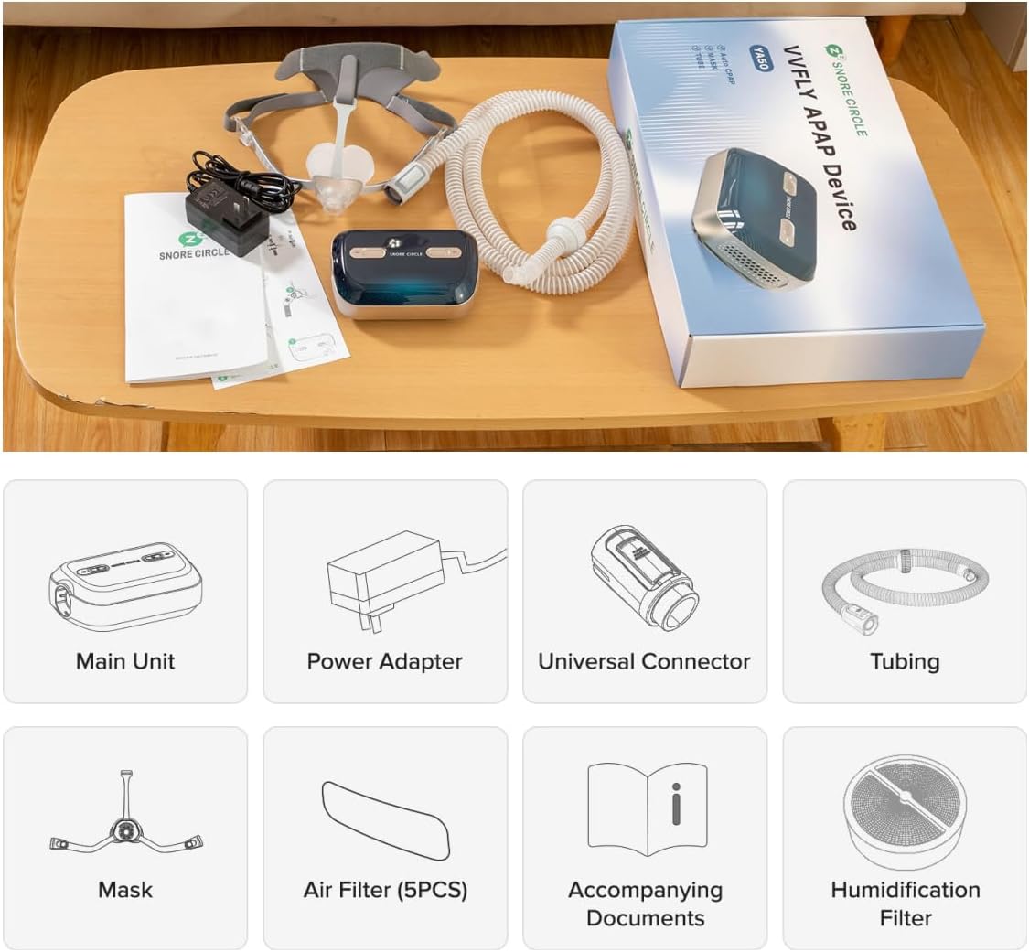 【EASY TO USE】It is also designed to be user-friendly, intelligent auto start/stop function, you can easily turn the machine on and off by simply putting on or taking off the mask. With a simplified humidification system that requires no water and an intuitive app that helps you track your sleep health data. You can enjoy a quiet and comfortable sleep without compromising your lifestyle or travel plans.