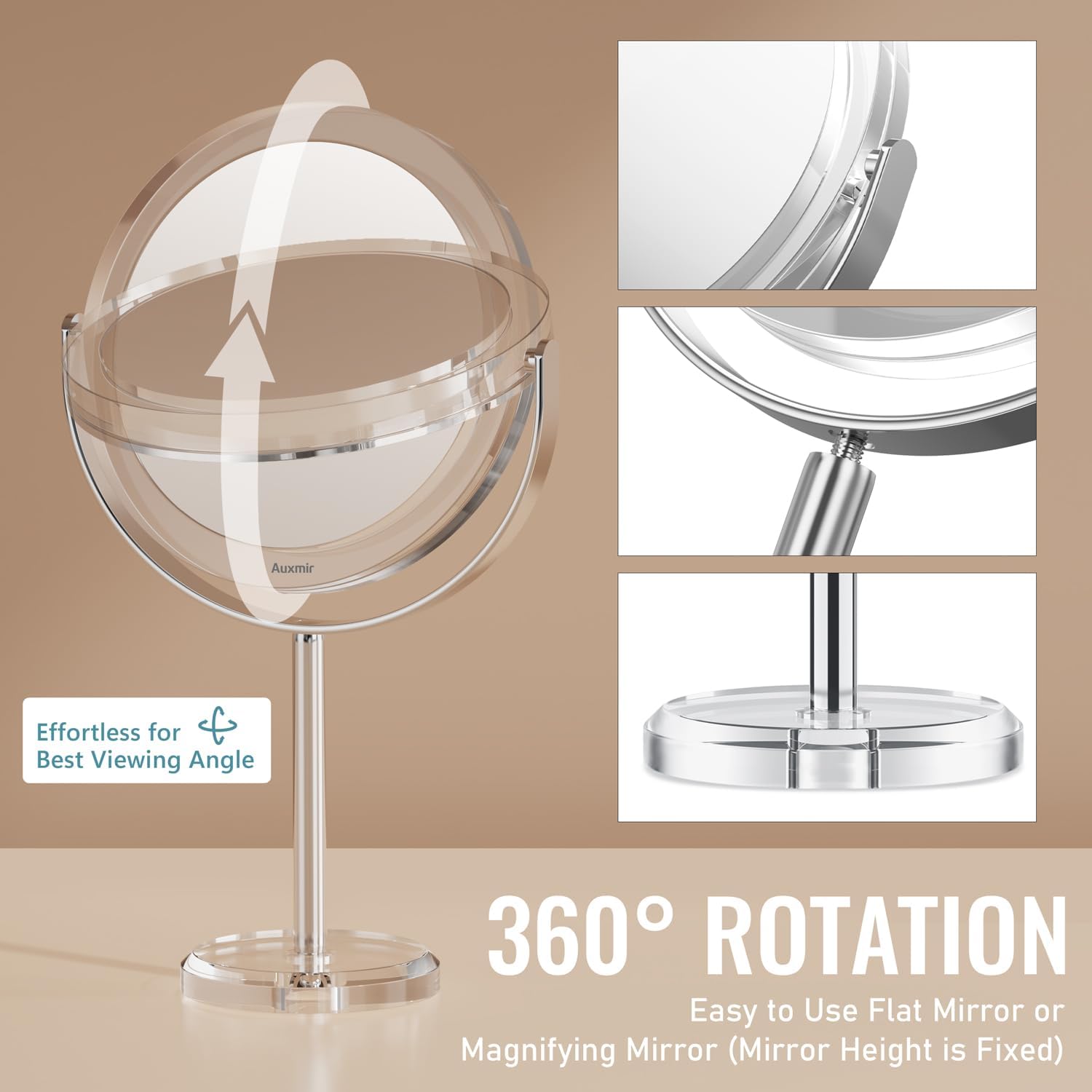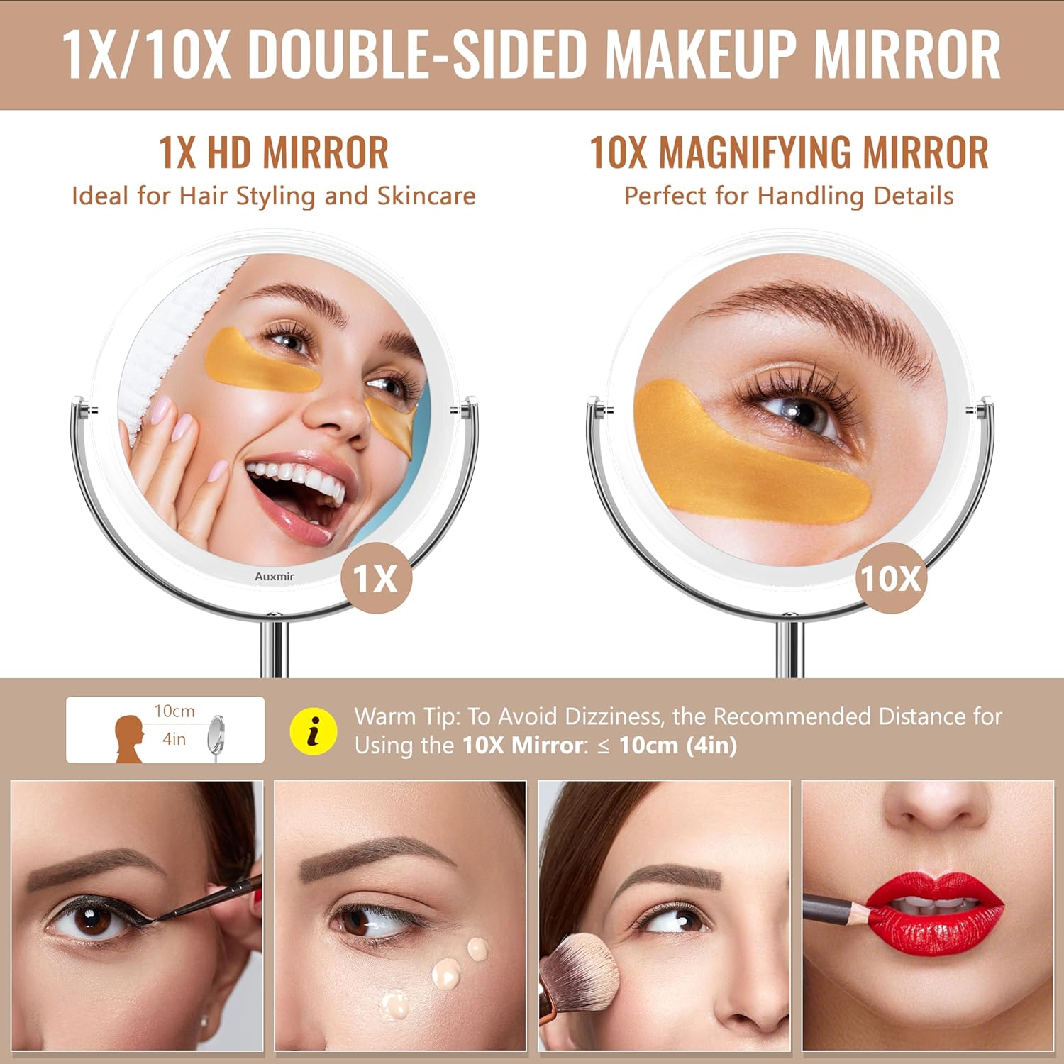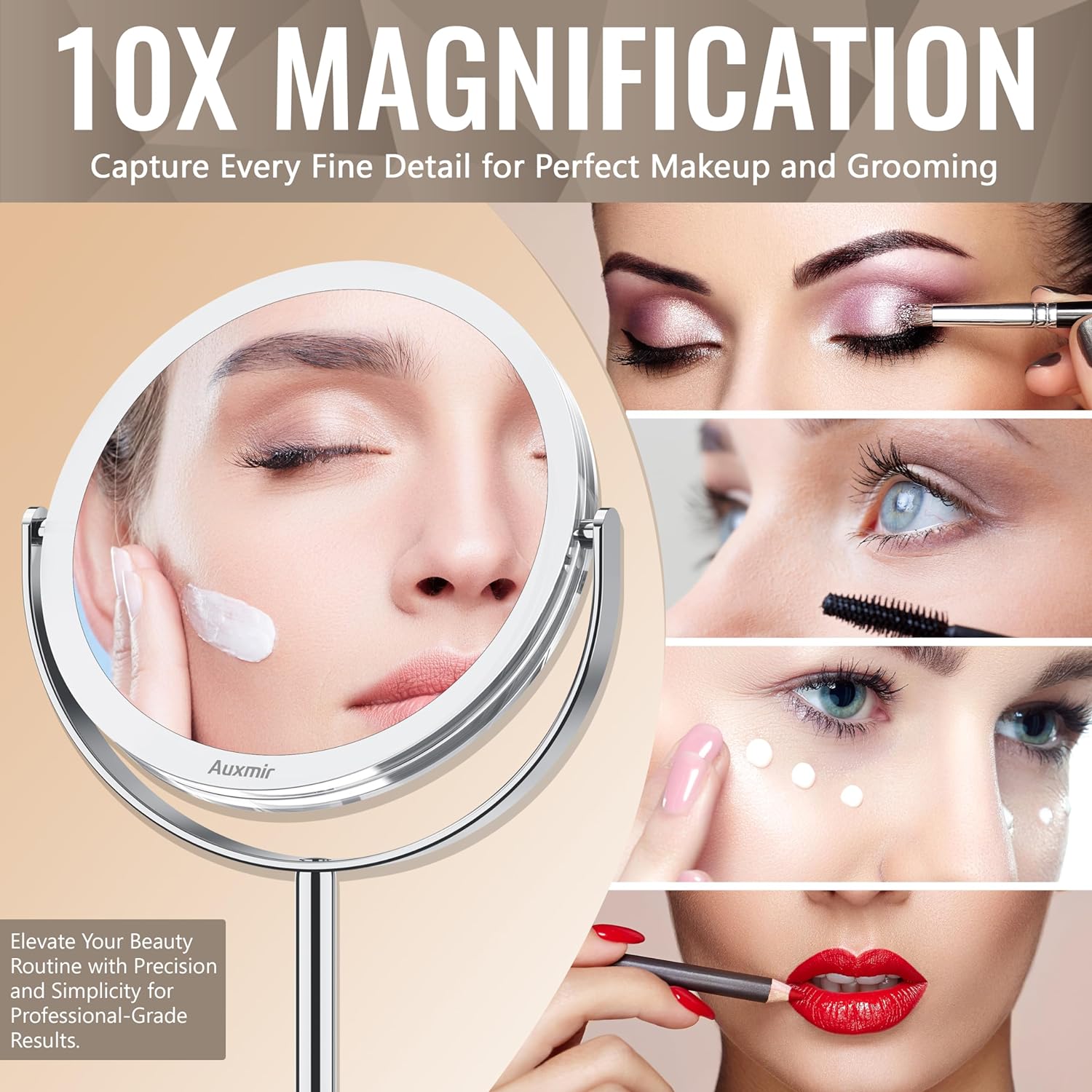 Auxmir 10X Magnifying Makeup Mirror, 6’’ Double Sided 1X / 10X Magnifying Tabletop Mirror with High Definition, 360° Rotation Free Standing Vanity Mirror for Dressing Table, Desk, Bathroom, Bedroom