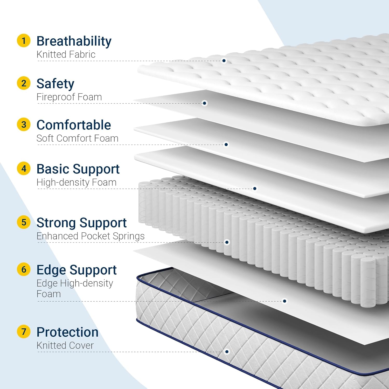 Pocket Sprung Mattres: Individually wrapped Pocket Sprung can offer your a quiet night. It can minimize partner disturbance and has better airflow ventilation than full foam mattress.