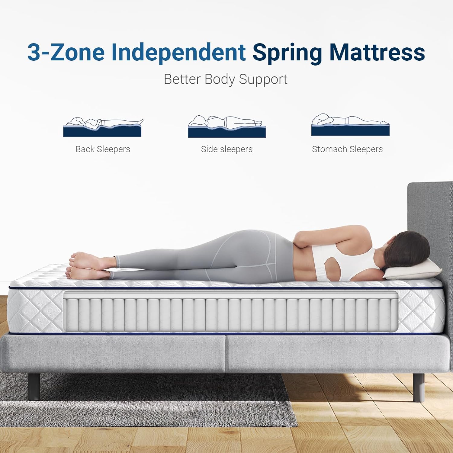 Avenco Double Medium Firm Mattresses 9.8 Inch 3 Zone Pocket Sprung Mattress 4FT6 Mattress with Breathable CertiPUR-US Foam and Skin-friendly OEKO-TEX Fabric 135x190x25cm