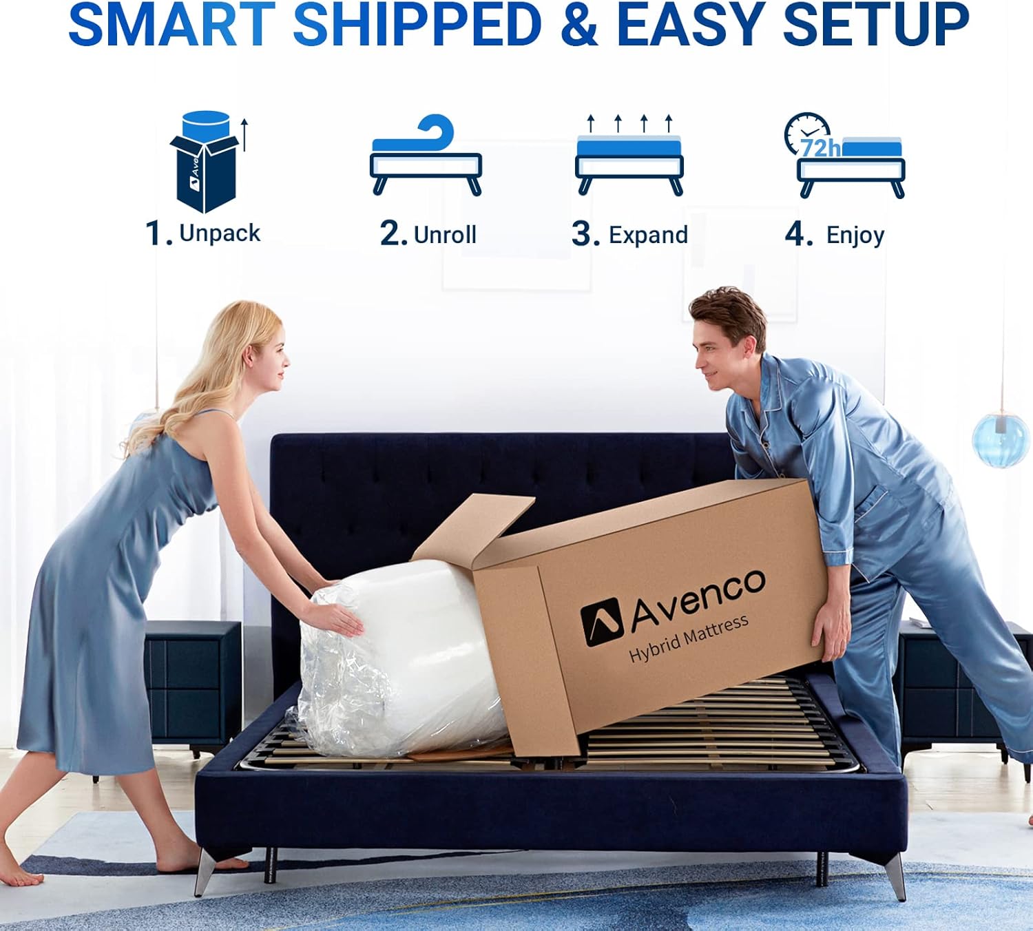Mattress-in-a-Box: Avenco’s hybrid mattress was adopted vacuum sealed and neatly rolled in a box. That’s quickly shipped and maneuvered into the bedroom, easily unboxed, restored in 10 seconds after cutting the protective wrap, and fully expanded for 72 hours.