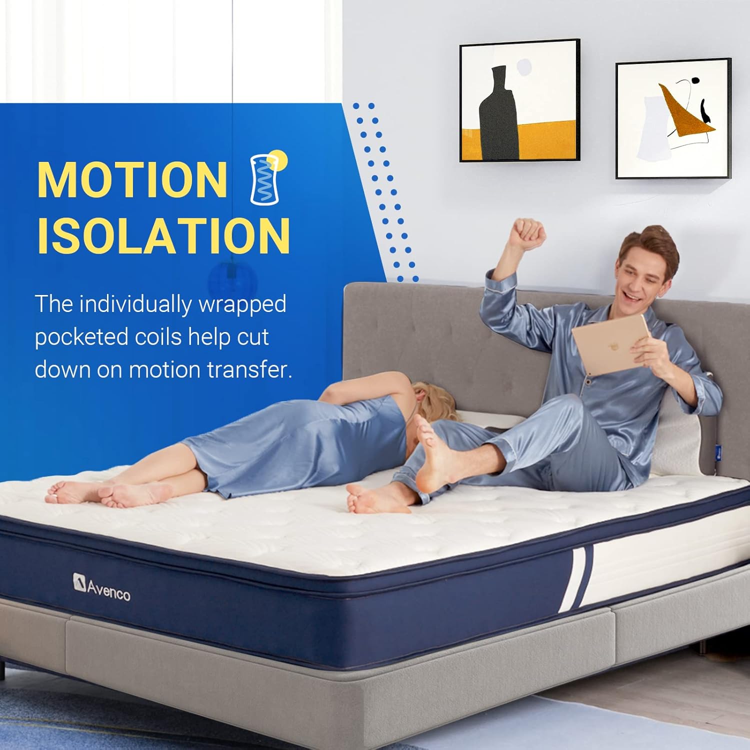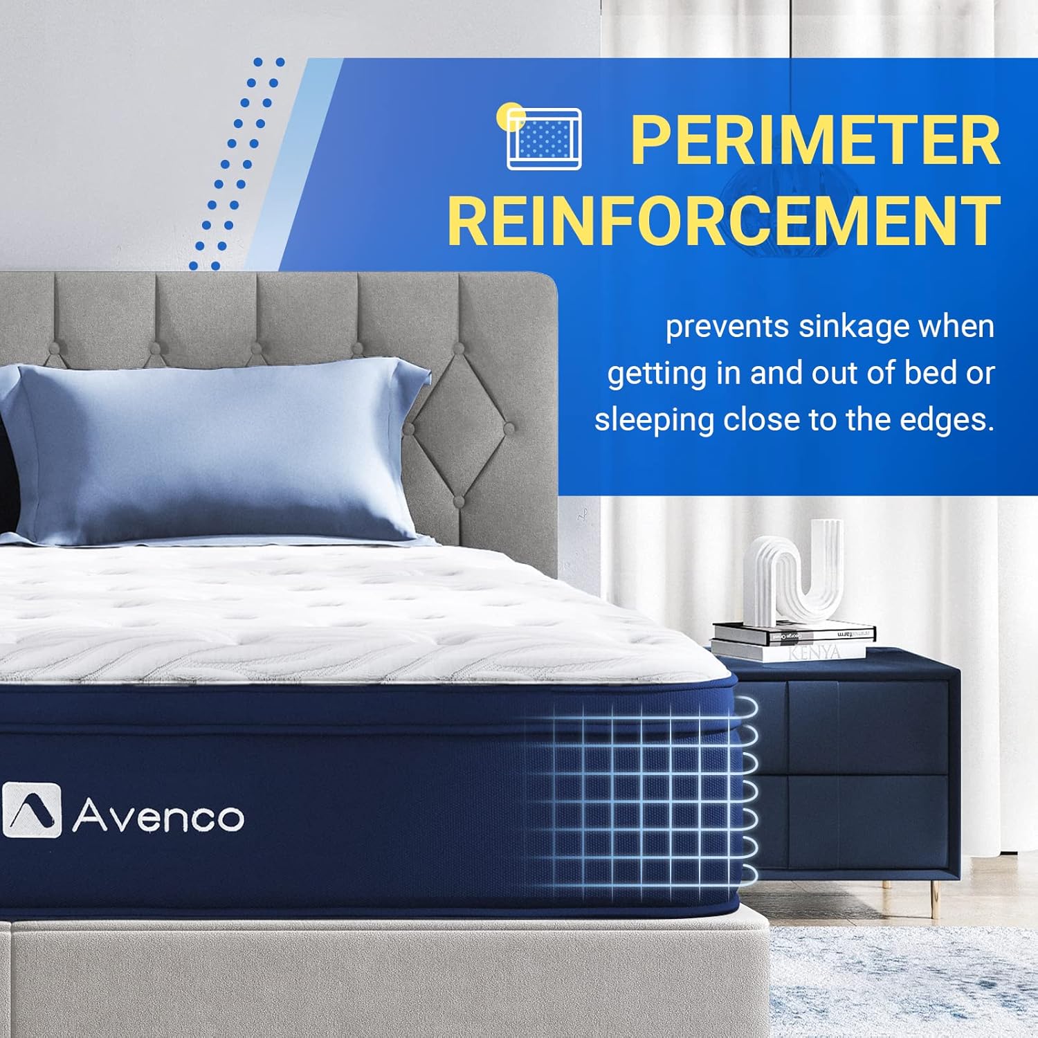 Strong Support and Comfort System:Avenco single mattress is supported by hundreds of Individually encased pocketed spring coils, which can contour to your curves for exceptional support and motion response. Each coil reacts to your body’s gravity independently, instead of all together, minimizing and reducing movement while increasing comfort. Edge-to-edge coils along the perimeter reinforce the strength and overall integrity of your mattress so you feel supported even while sitting.