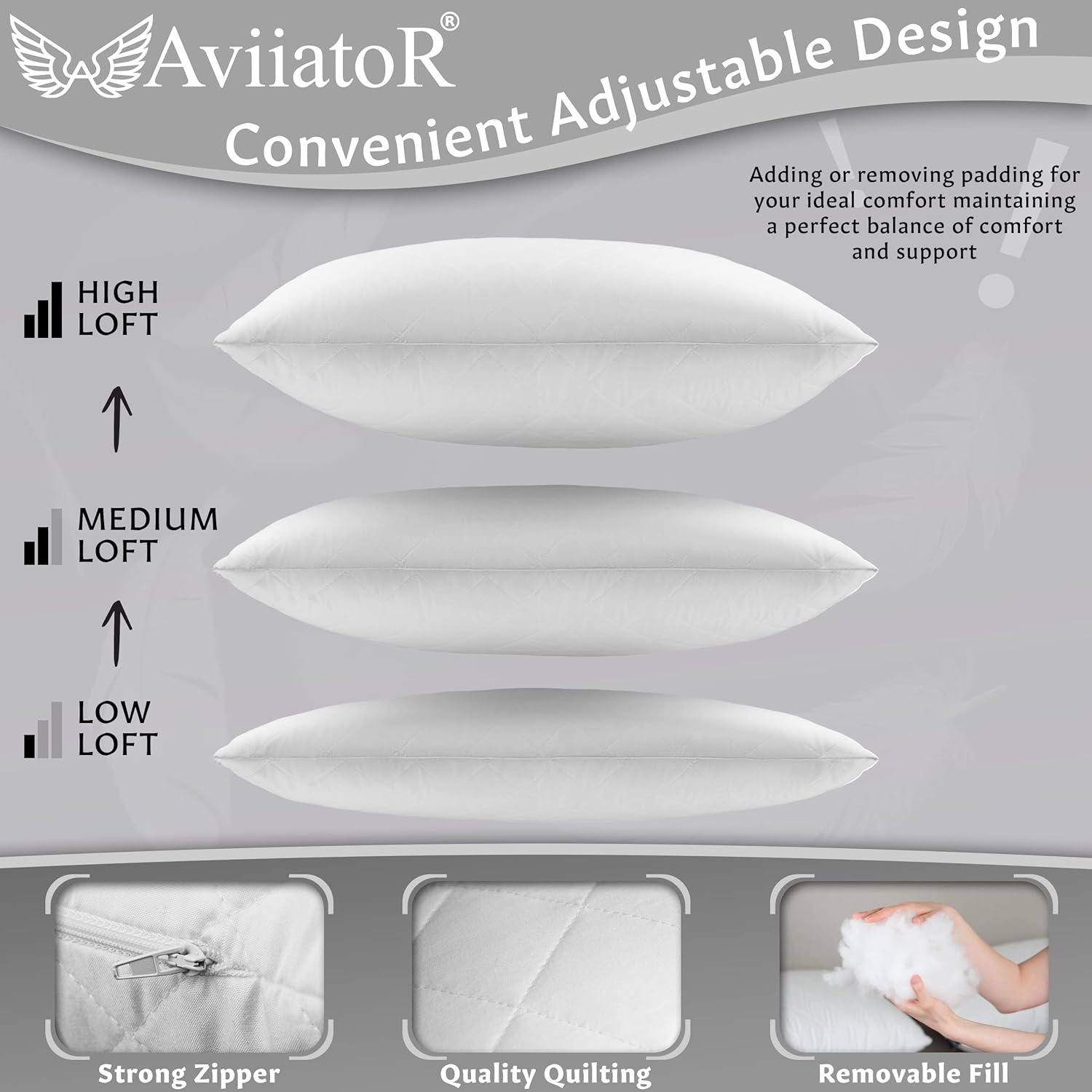 ✅ EXTRA FILLED: AviiatoR pillows have been extra filled to provide you with the support you need, Our adjustable pillows are zippered so you can adjust the firmness of your pillow from firm to soft by simply taking out the fibres.