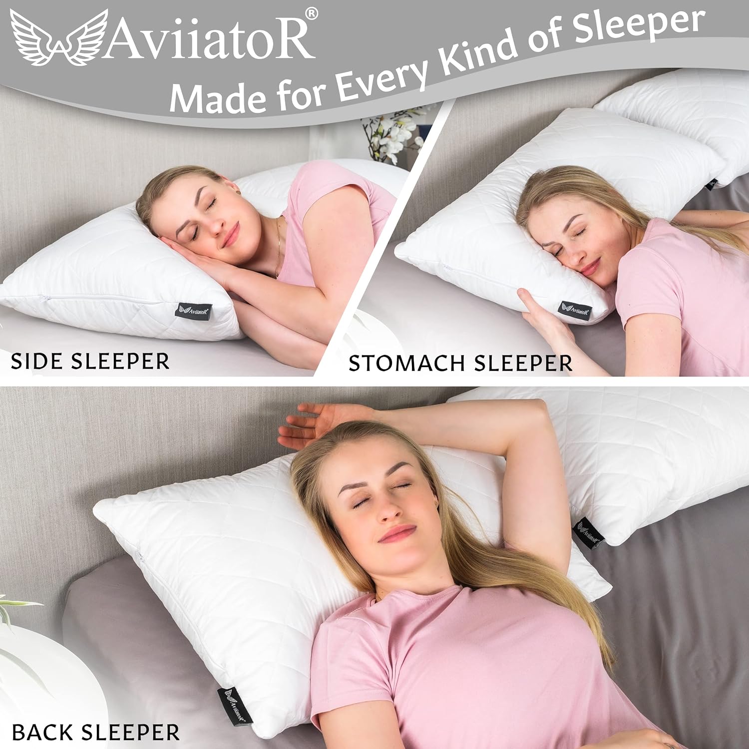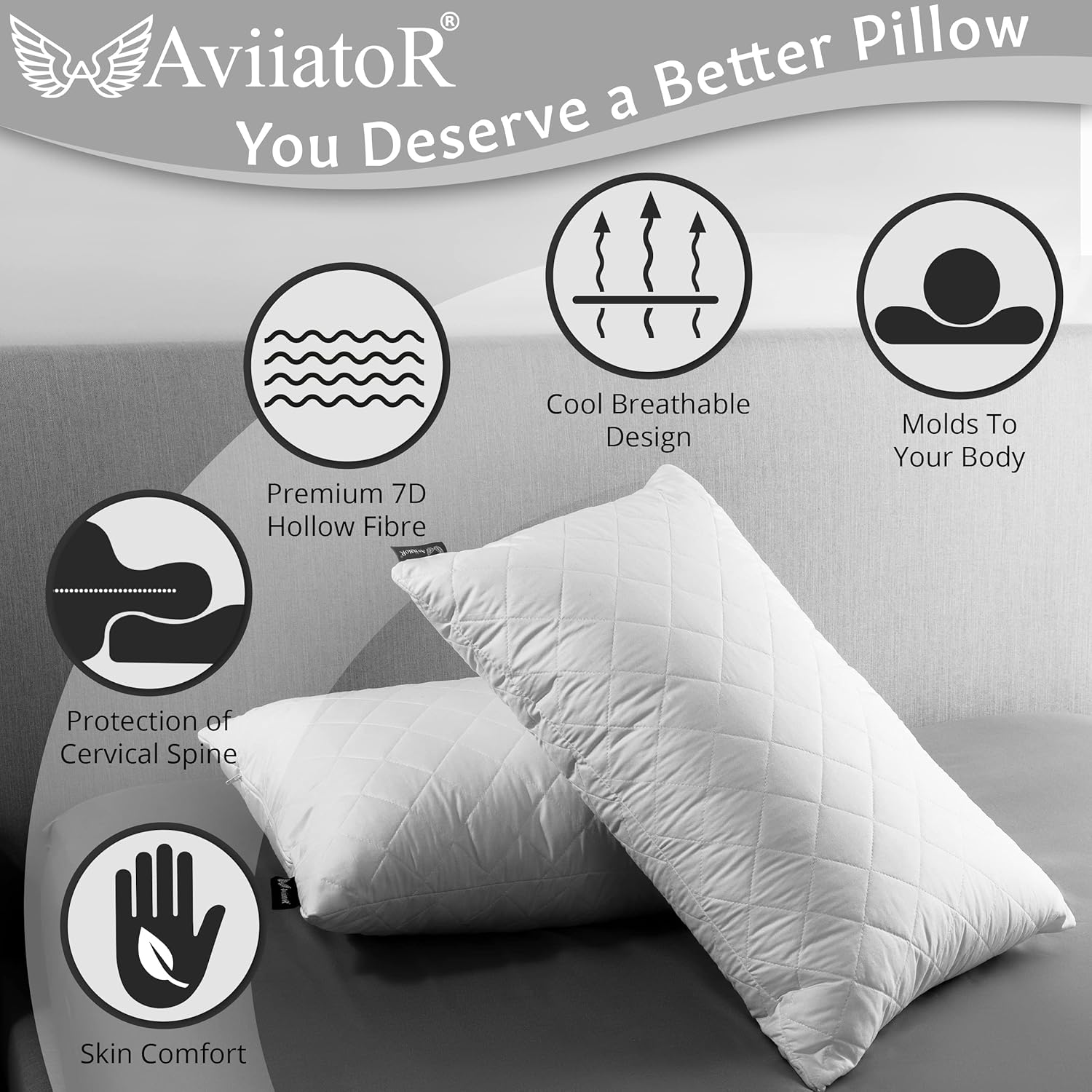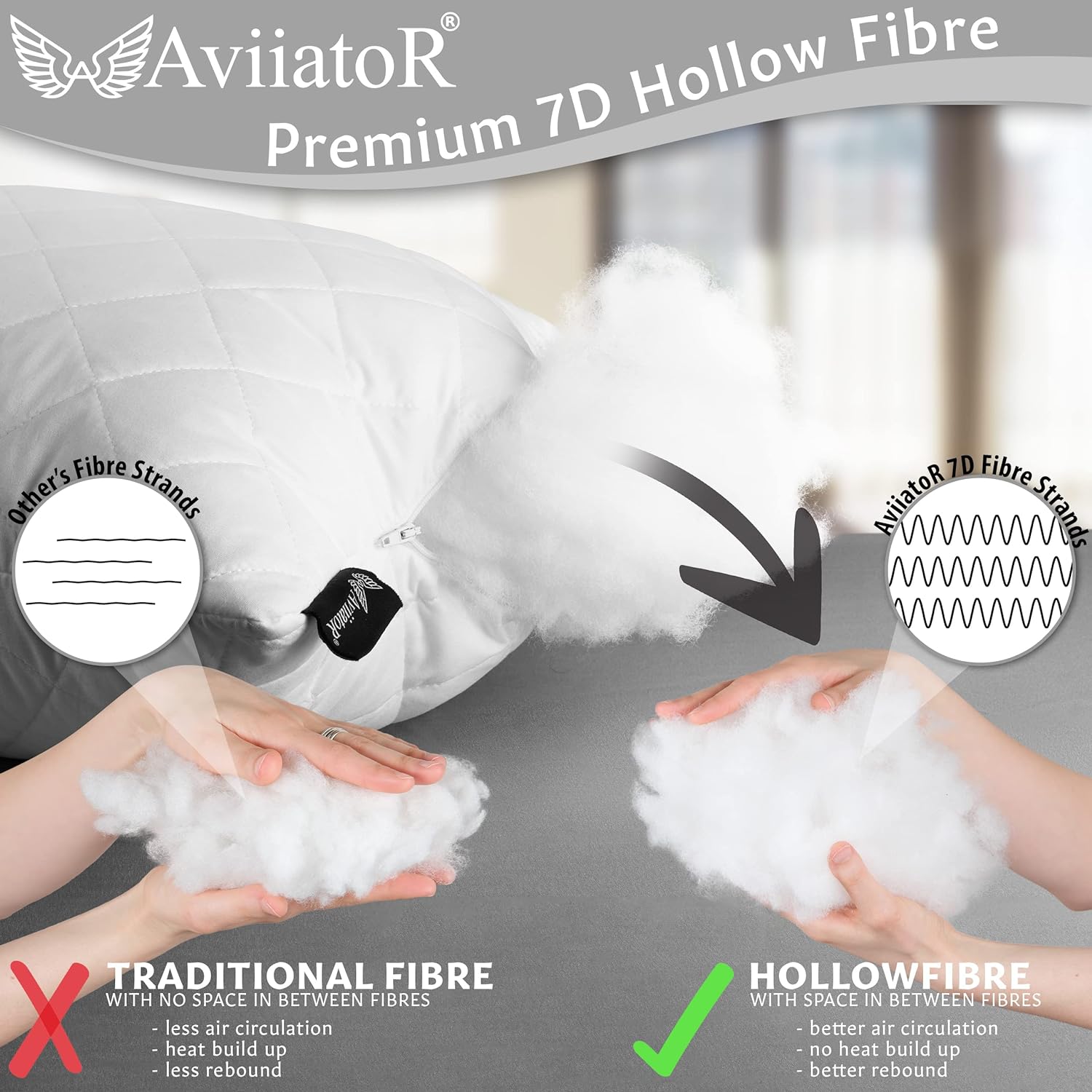 ✅ SUPER PLUSH MATERIAL: AviiatoR 3 Layer quilted case is helps to cushion your sleep while sleeping. Our extra filled fibre pillows are crafted in super plush 7D fibre that puts all other standard pillows to shame! They are expertly tailored to ensure maximum comfort for any and all sleeping positions.