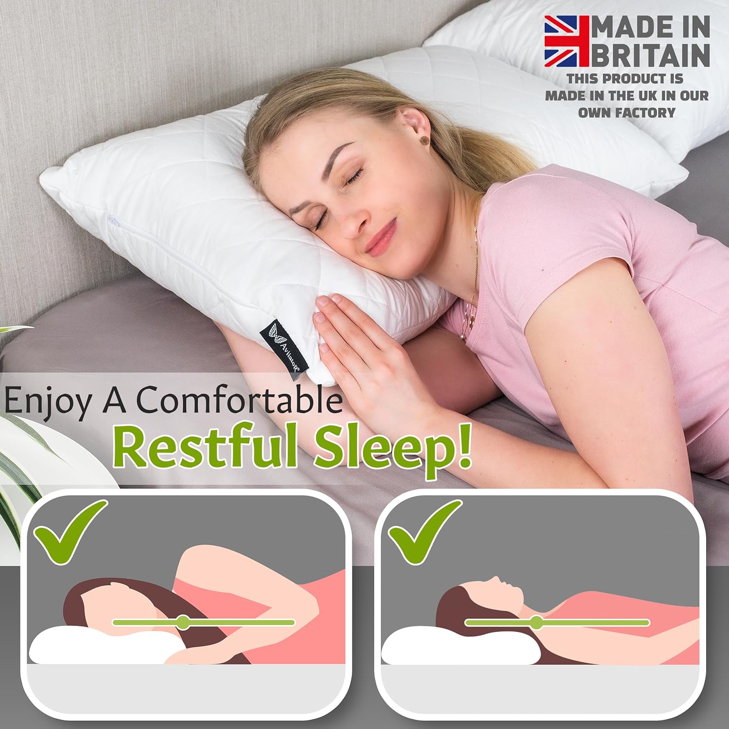 ✅ MADE IN THE UK: Our pillow are made in the UK in our own factory, we quality check all our pillows and make sure you receive nothing but the best products. Our pillows are made to fit all UK standard pillow cases.