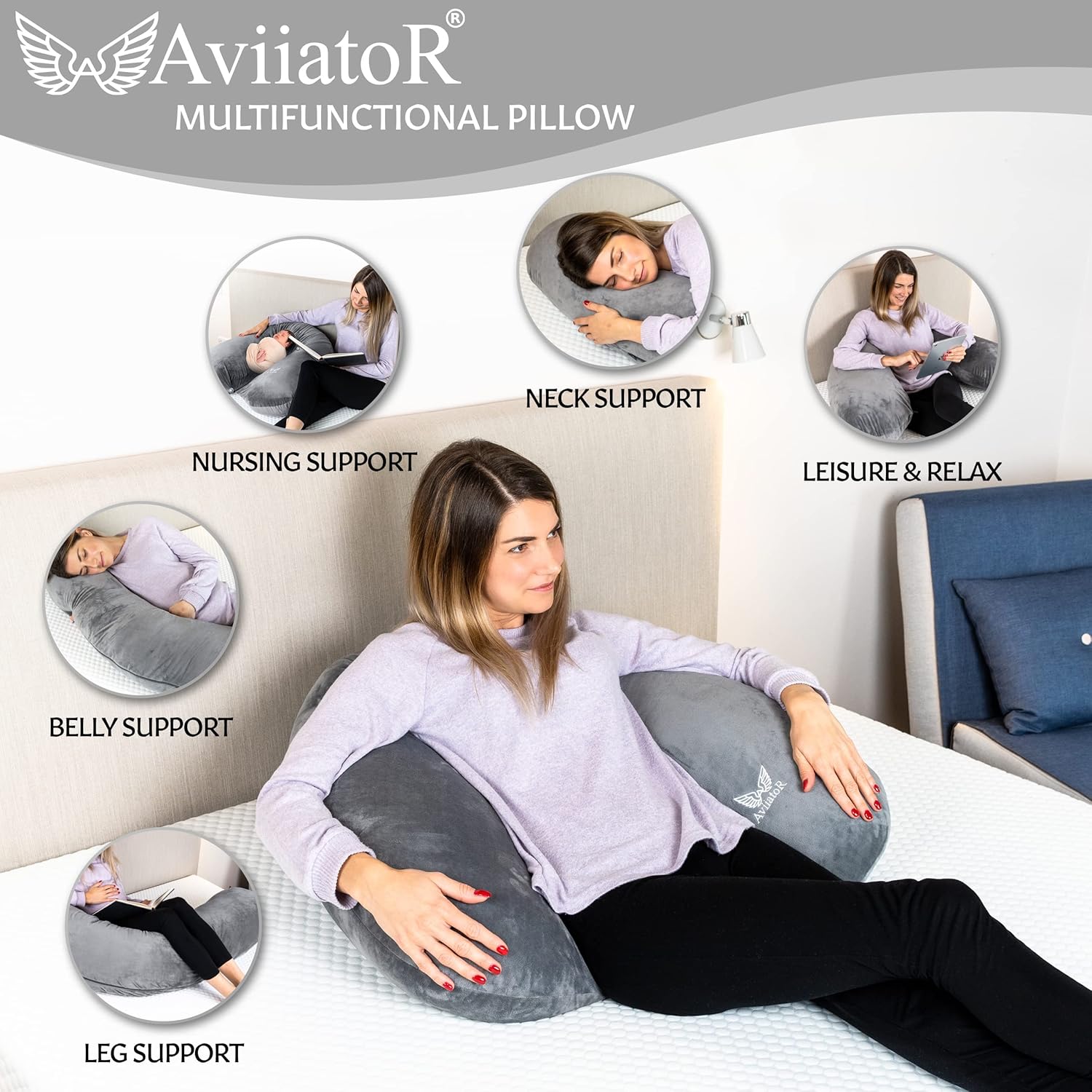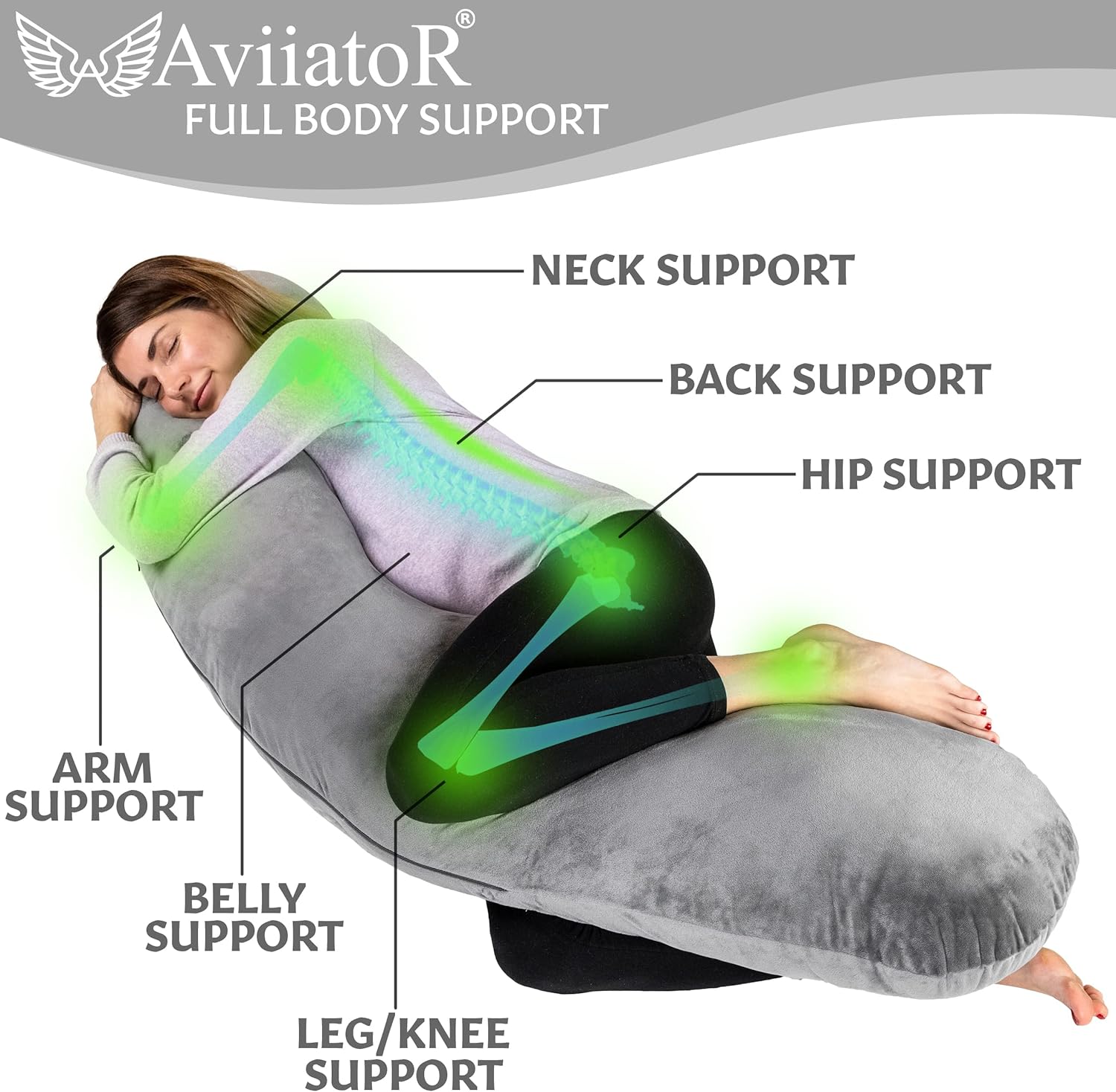 ✅MULTI-FUNCTIONAL BODY SUPPORT PILLOW. AviiatoR full body pillow is easily formed into multiple positions and is a great support for sleeping, reading in bed, watching TV, or just relaxing. Total Body Support is great for sports recovery helping relieve back pain to get a better sleep, reducing interruptions throughout the night; Great for the whole family to enjoy.