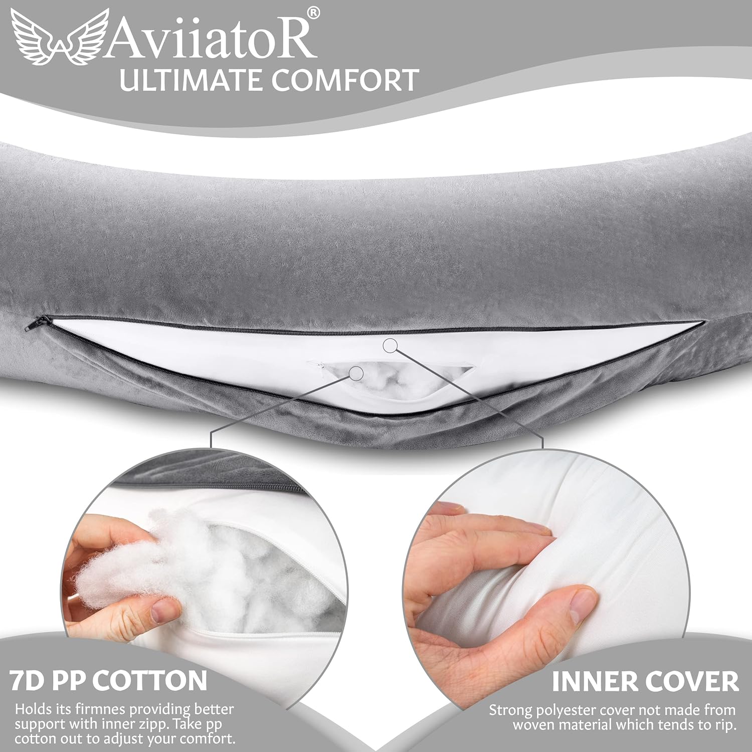 ✅CUSTOMER FOCUSED. AviiatoR body pillows allows users to customize the filling loft by subtracting the amount of filling through the zippers on the inner case. 30 Day Money Back guarantee If you have any issues, please contact us, and we will resolve any issues guaranteed.