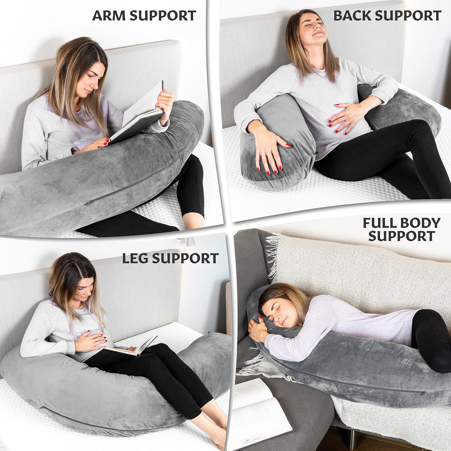 Our full body pillow provides the perfect balance between comfort and support for your belly, hips, legs, and back. Enjoy superior comfort while you sleep or even just lounge around.You can also use this pillow to sit upright in bed to read, watch TV, or work on your laptop.Our pillows are extra fill