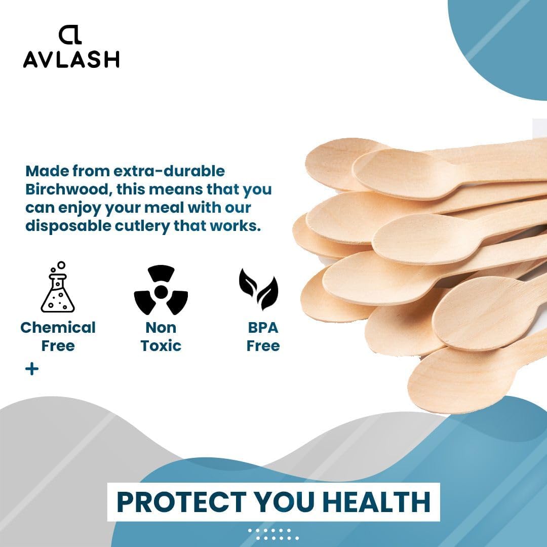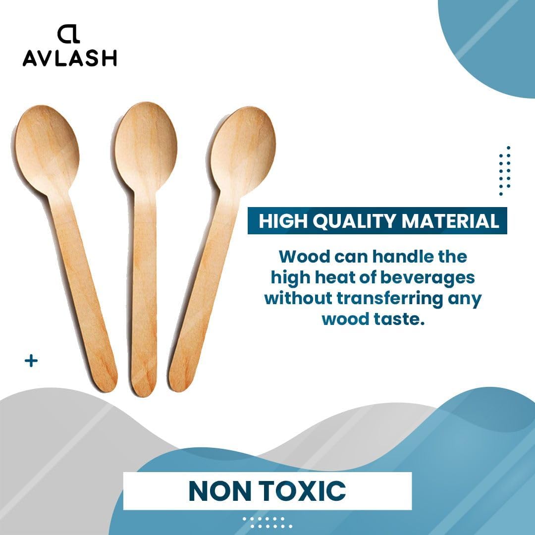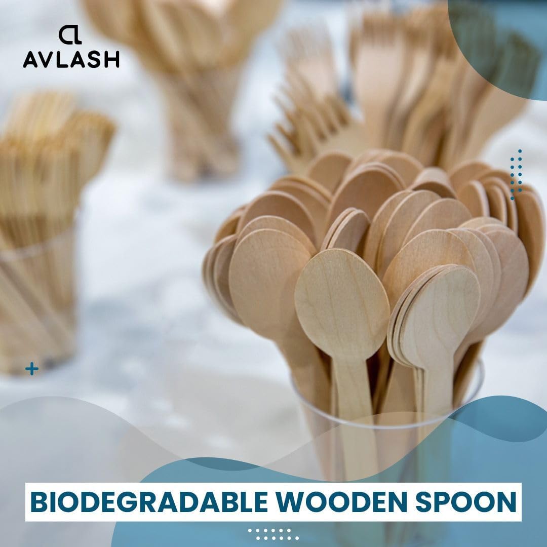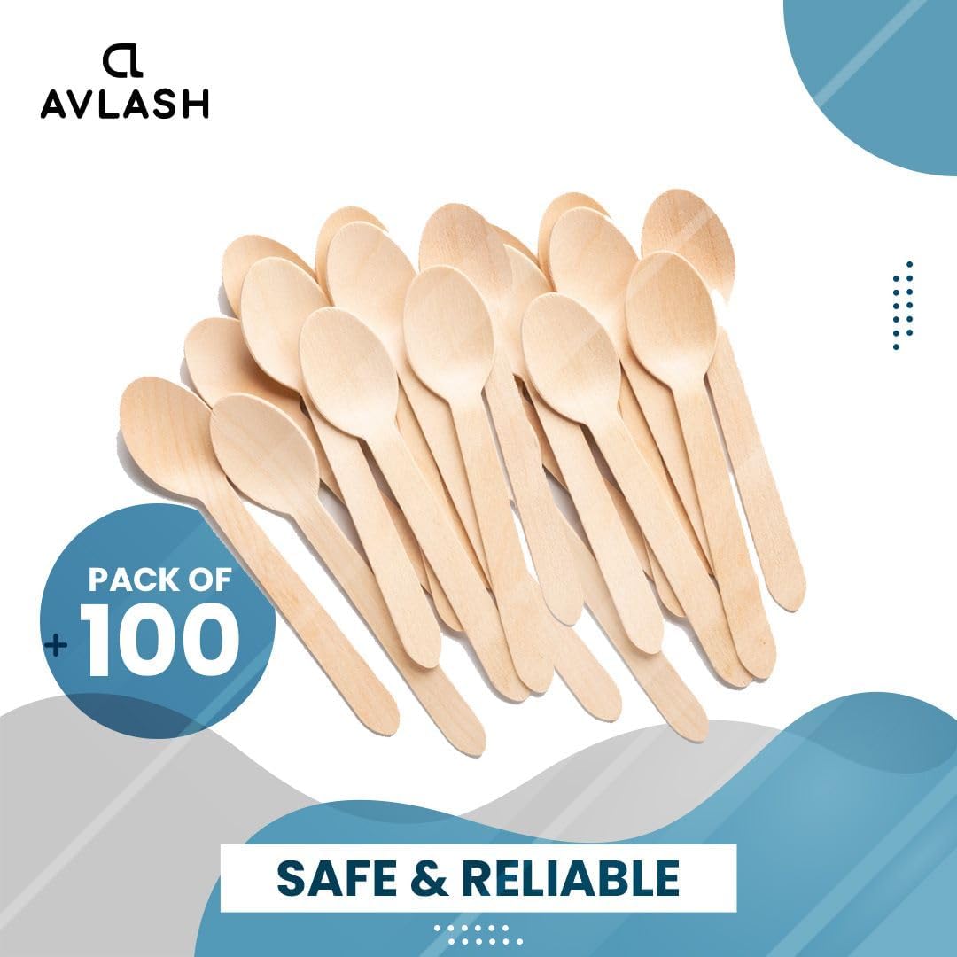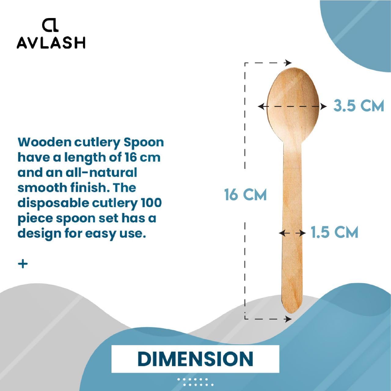 Avlash® [ Pack of 100 ] Disposable Wooden Spoons, Biodegradable Wooden Spoon – 16cm Long | Eco Friendly & Plastic Free Wooden Spoons – Ideal for Wedding, Picnic, Party, Office (Spoons)