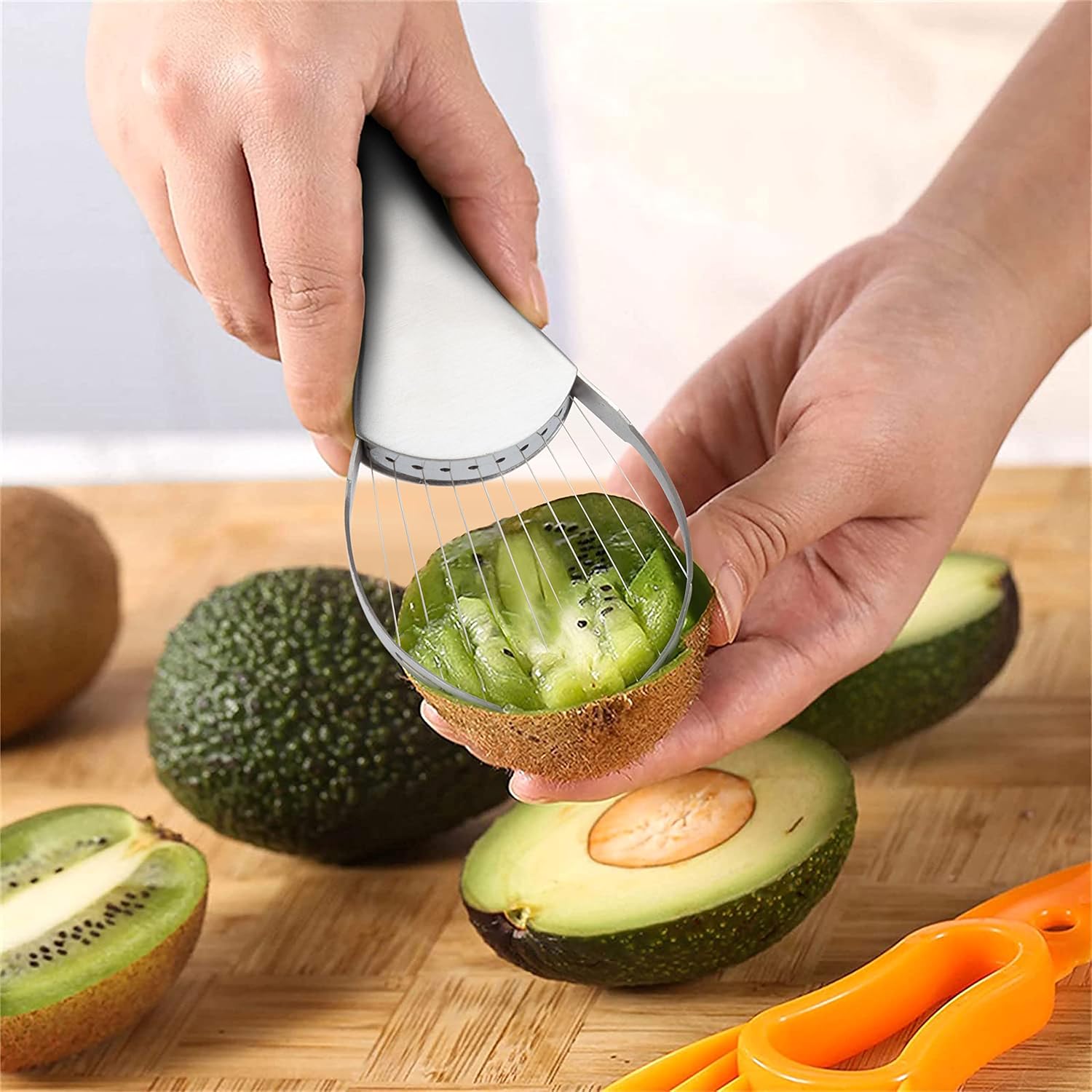 Avocado Slicer Multifunctional Avocado Peeler Stainless Steel Easy Sliced Pitted Avocado Separator for Fruit Kiwi Mango