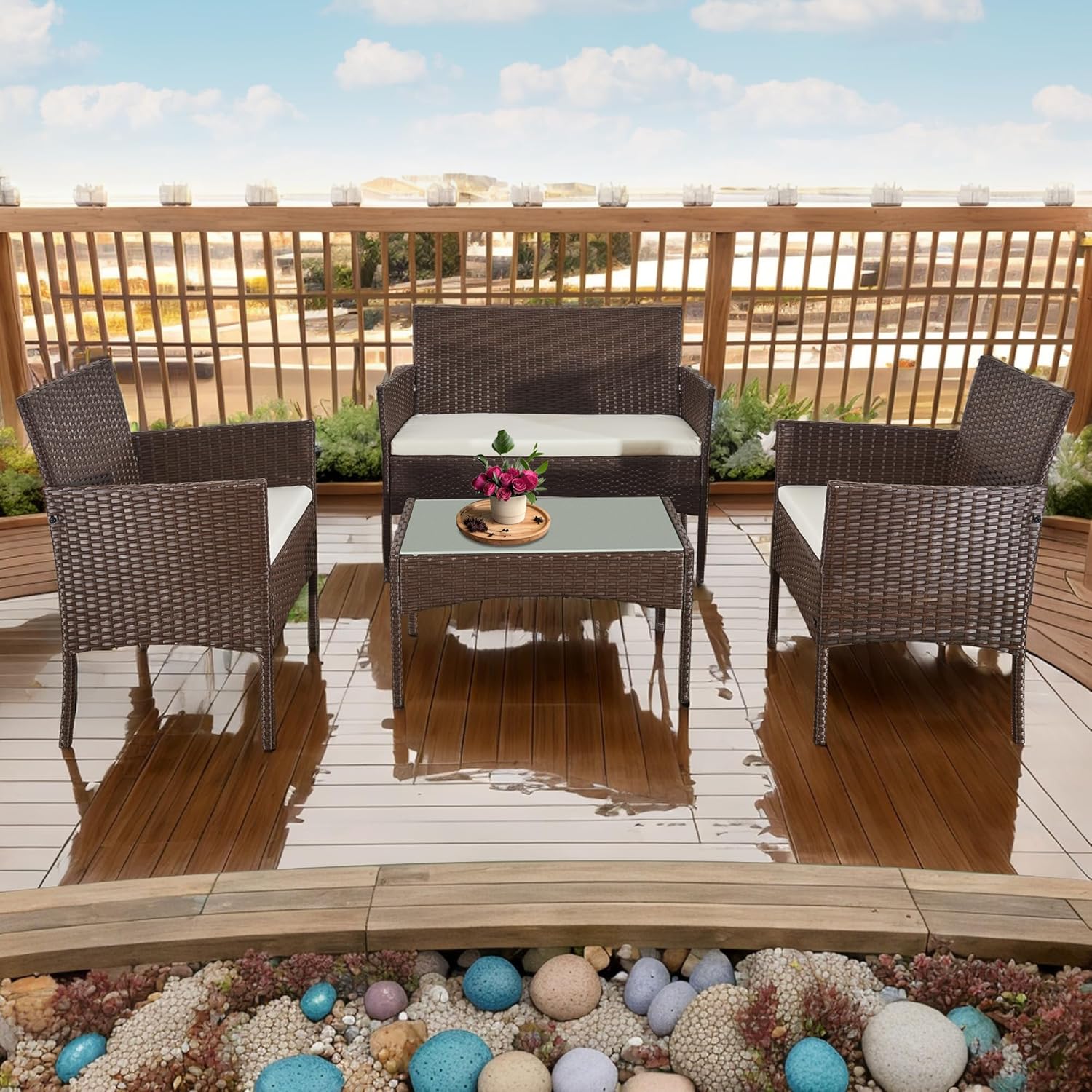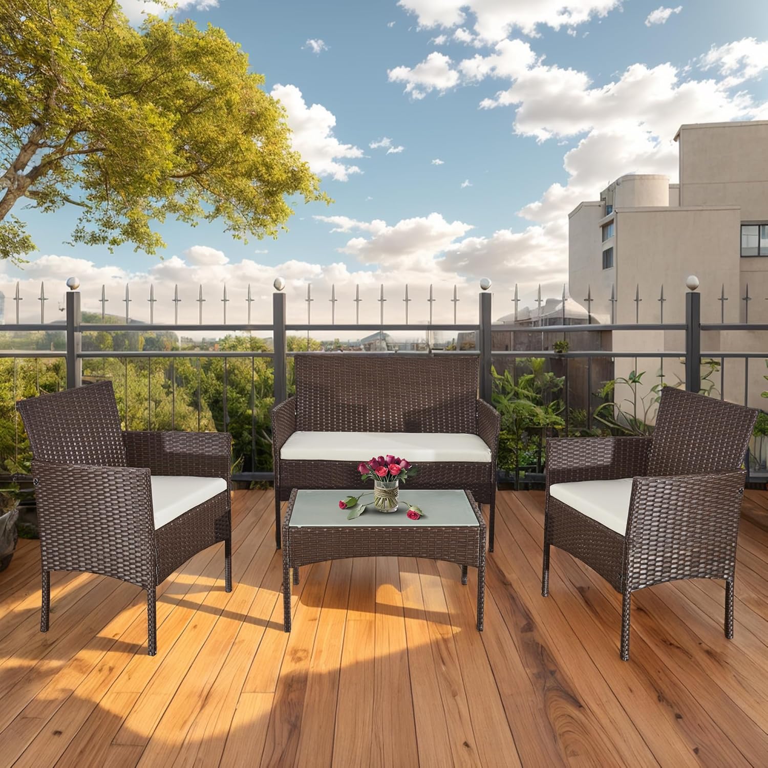 STURDY AND DURABLE: This 4 pieces patio furniture sets is made of sturdy powder-coated steel frame and all-weather resilient PE rattan LONG LIFE LASTING, the cushion covers of this patio conversation set with zips that can be removed at will for easy cleaning.
