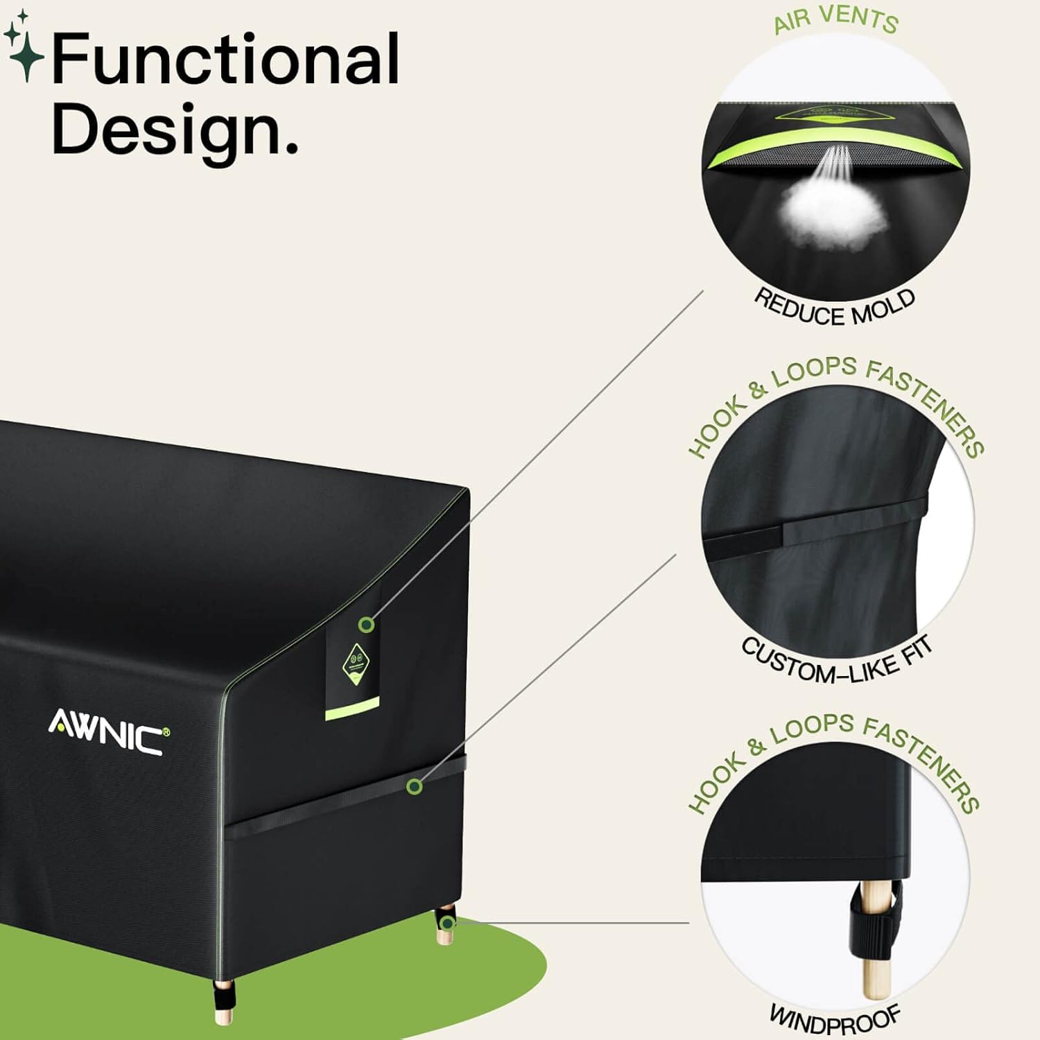 Eco-friendly PU coating: AWNIC’s outdoor furniture covers are coated with an eco-friendly PU coating for waterproofing and durability while caring for the planet. Comes with a handy bag for easy storage.