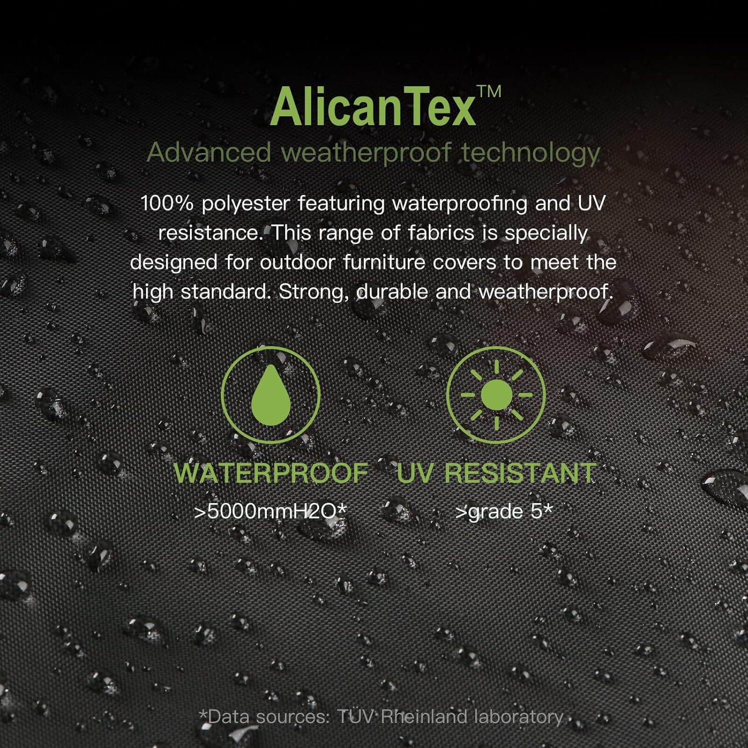 AlicanTex: Made of technical fabrics, it has passed TÜV Rheinland’s waterproof, UV resistance and tear strength tests