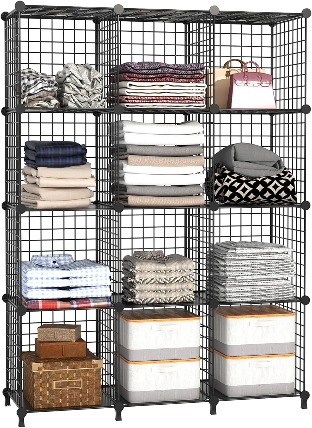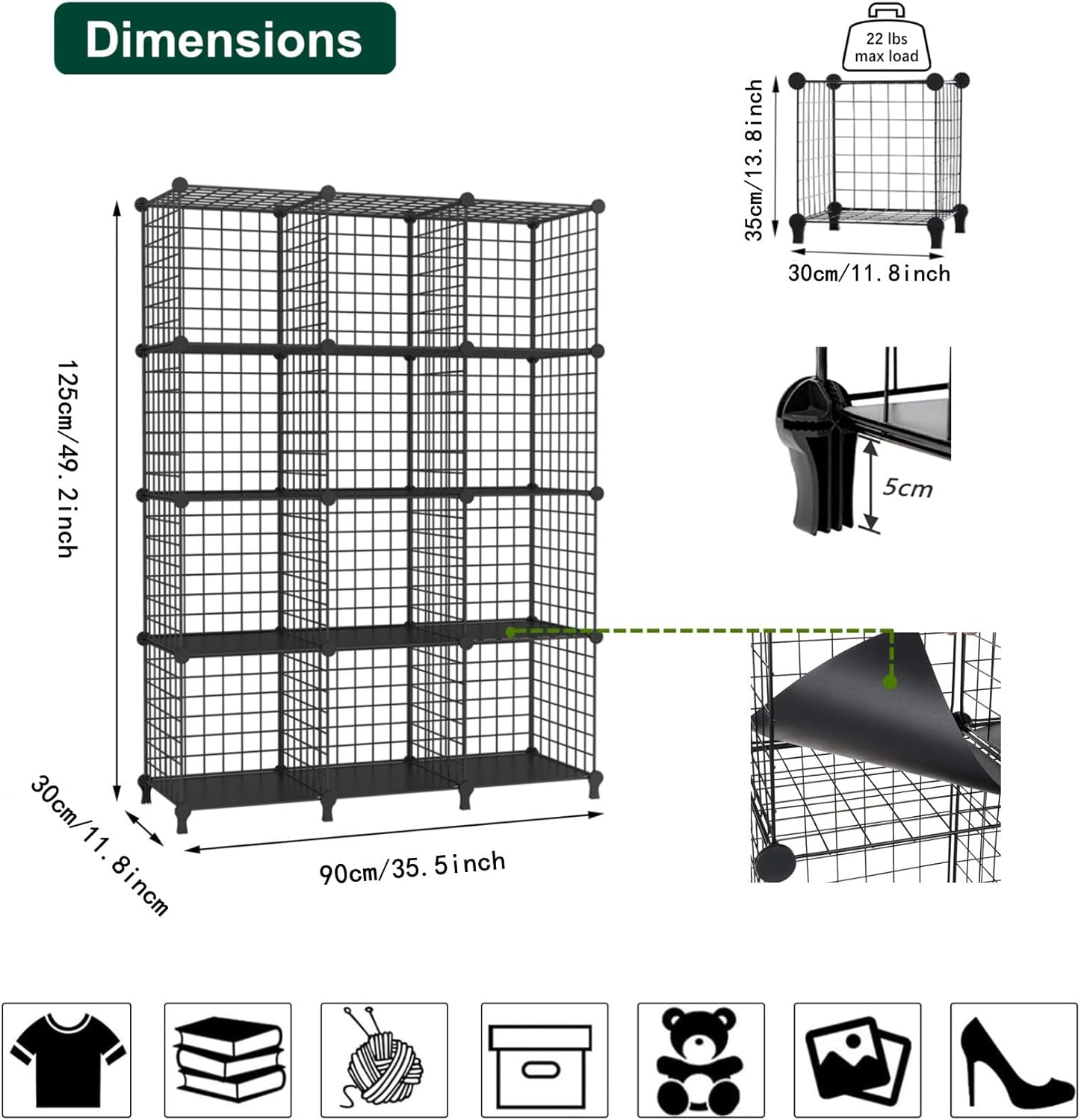 AWTATOS Cube Storage Unit, 12 Cube Wire Storage Shelves, Multifunctional DIY bookcases and Shelving Units Perfect for Office/Livingroom/kitchen/Bathroom, Black USCIH12BE