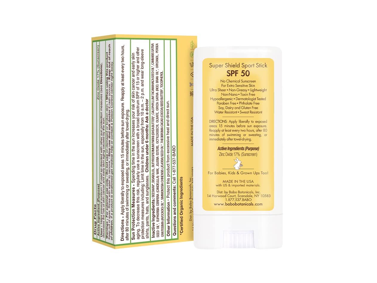 Babo Botanicals Super Shield SPF 50 Natural Sport Stick Fragrance Free Sunscreen 0.6 Ounce