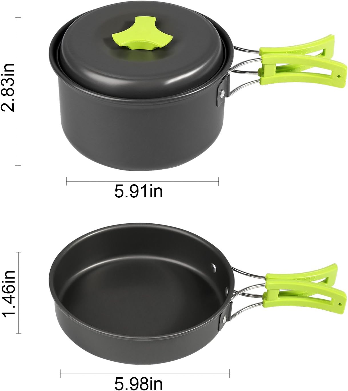 ✅【Suitable for 1-2 People】: Our outdoor cooking set is designed for one or two people. The camping cookware mess kit is suitable for camping, hiking, backpacking, picnic and other outdoor activities.