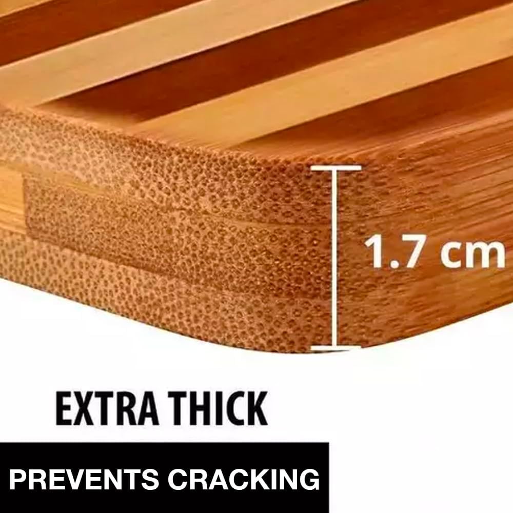 🔪🌿🥩🥕 MADE FROM STRONG, NATURAL AND DURABLE BAMBOO – This attractive chopping board is made from bamboo which is a wood that is renowned for its exceptional durability and strength. By choosing this material for our chopping board we were trying to ensure it would withstand daily kitchen use without warping or splintering