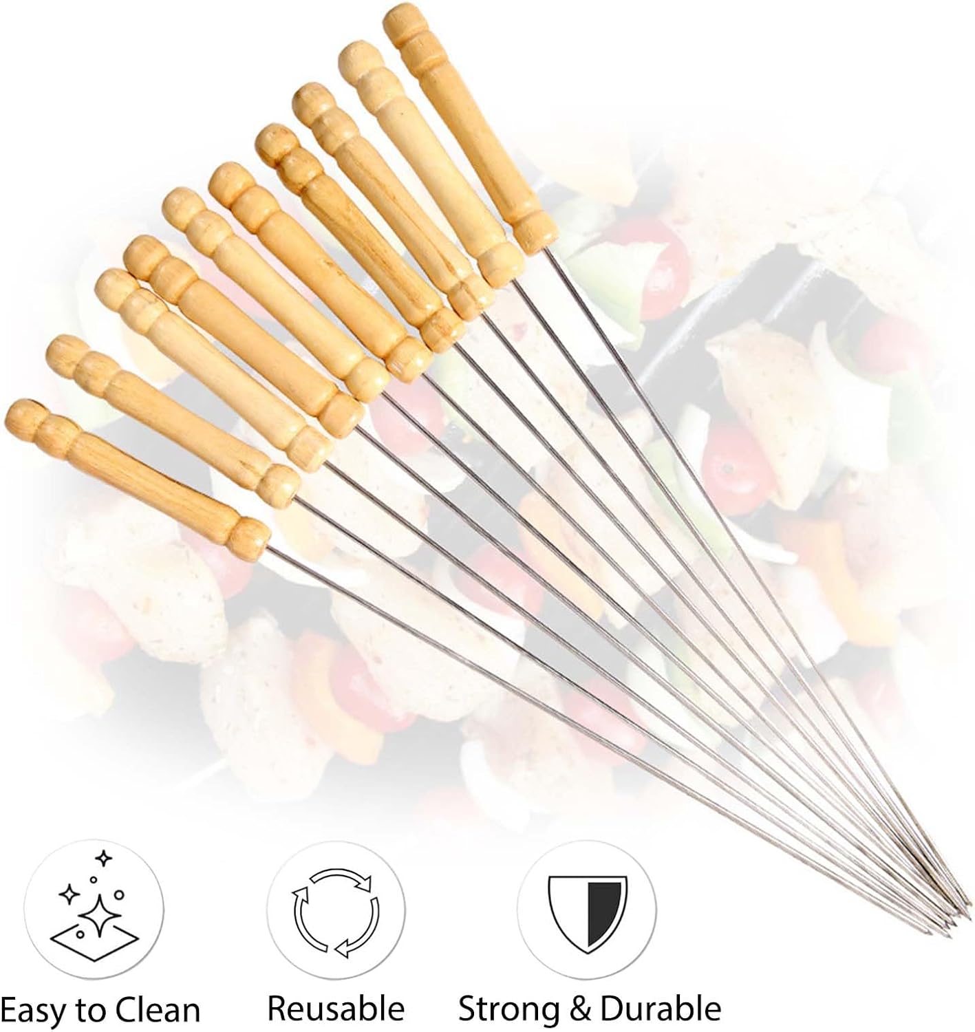 Barbecue Skewers, 10PCS BBQ Skewers Stainless Steel Kebab Skewer with Wooden Handle Round Grill Meat Metal Sticks Outdoor Barbecue Supplies