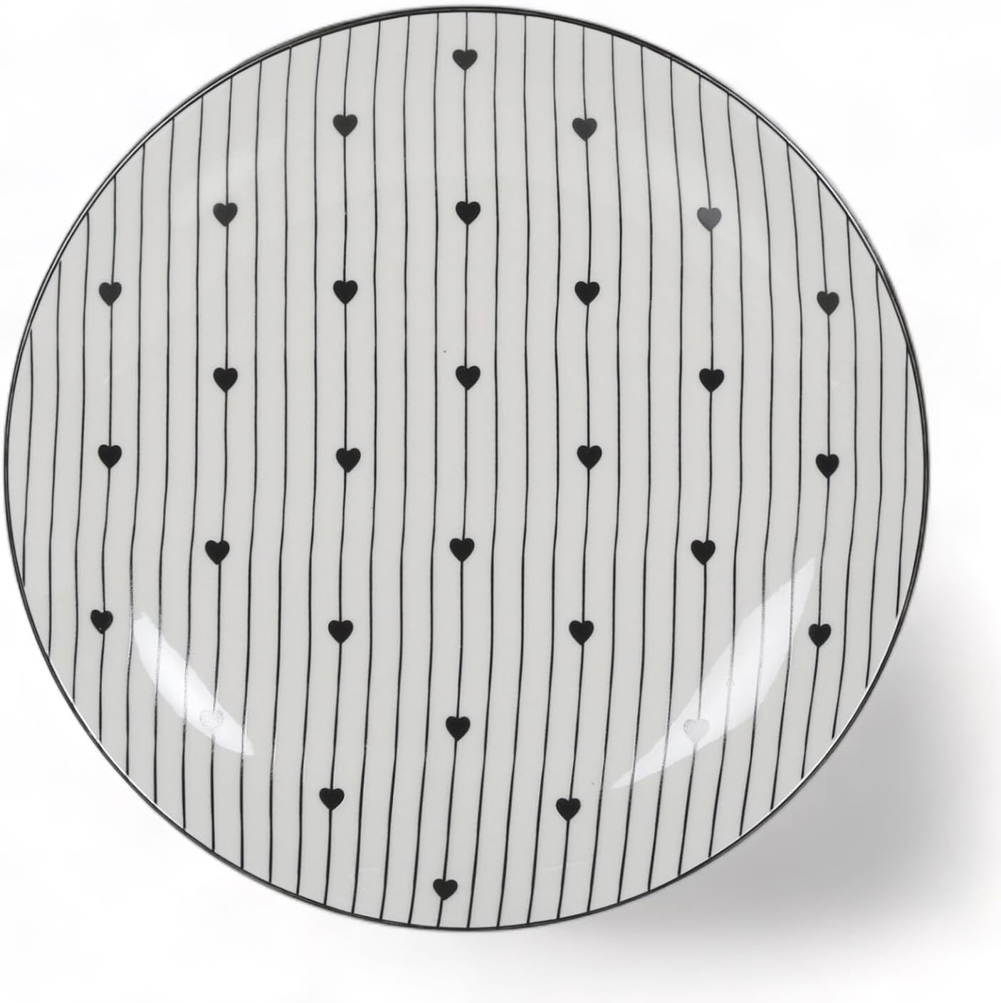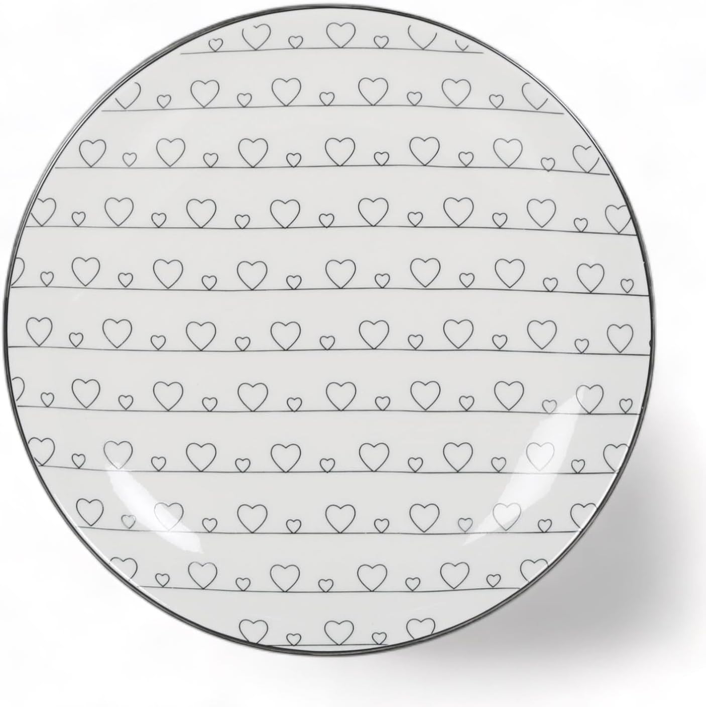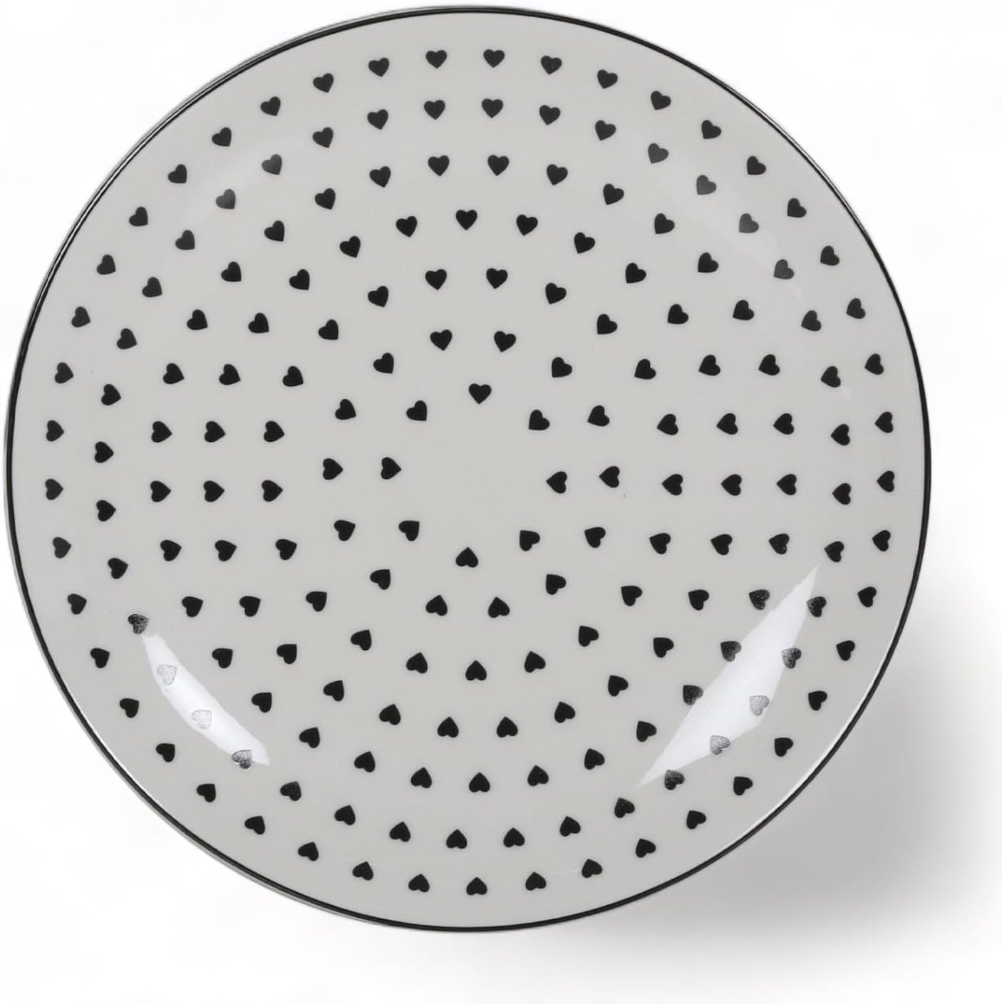 Bargain Lovers Set of 4 Colourful Side Plates/Heart Printed Dessert Plate / 19cm (7.5inch) Porcelain Dinner Plate – 4pk