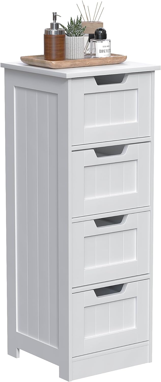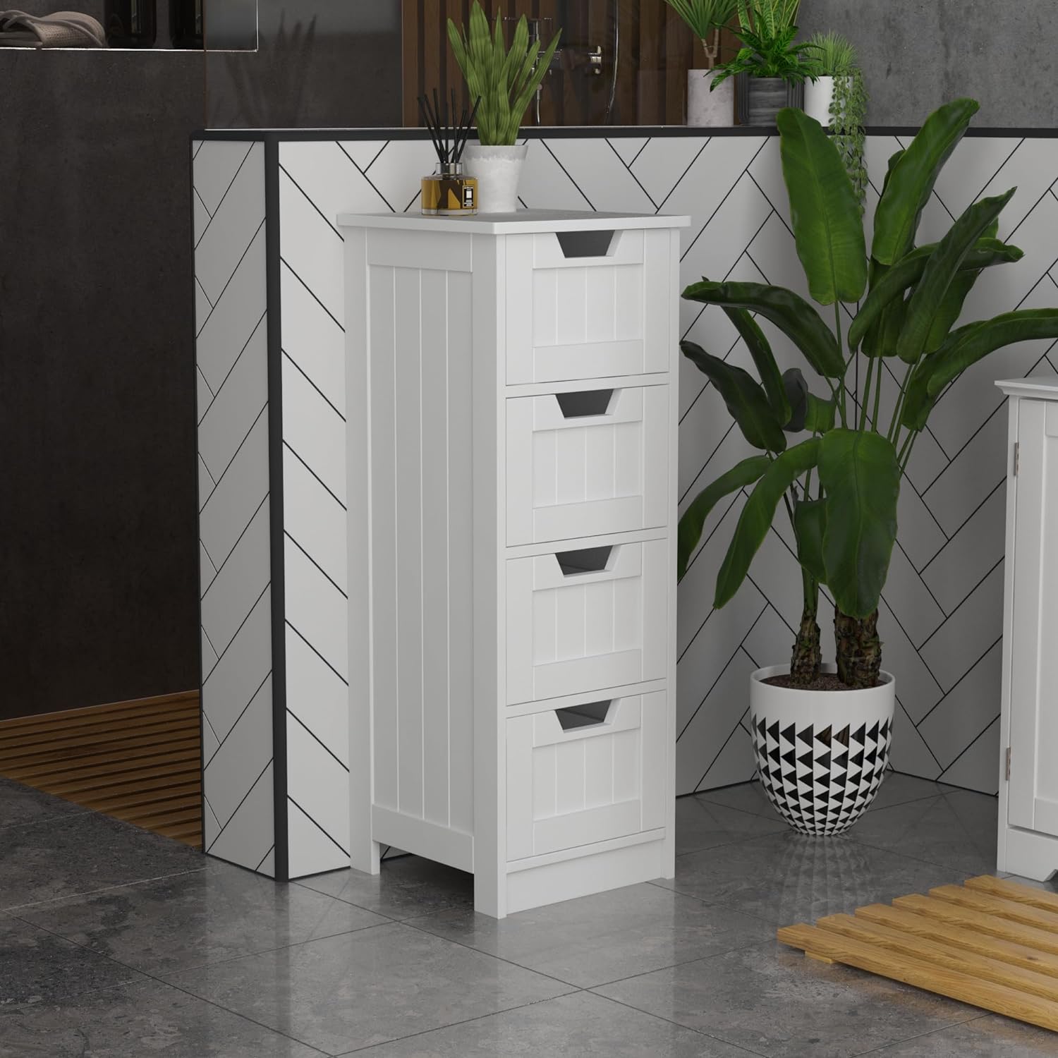 Bath Vida 4-Drawer Floor Standing Cabinet Unit Bathroom Storage, Wood, White