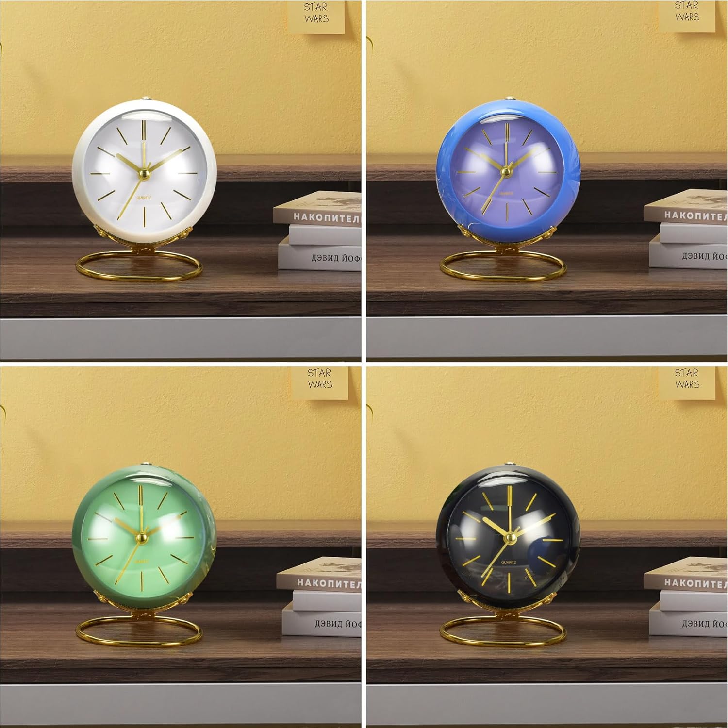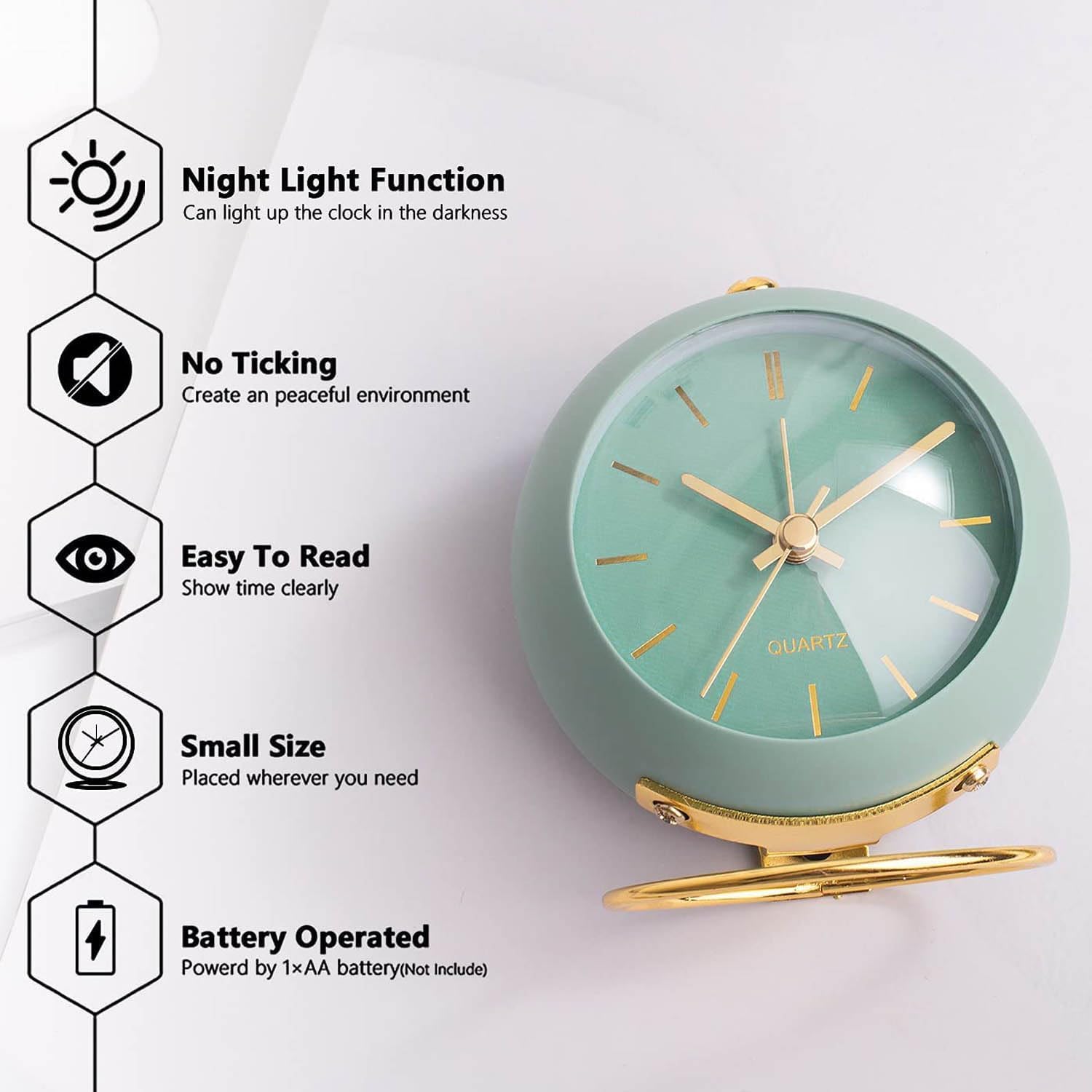 Battery Operated Desk Alarm Clocks with Light,Retro Silent No Ticking Analog Small Clock,Loud Table Clock for Bedside/Bedroom/Kitchen/Office