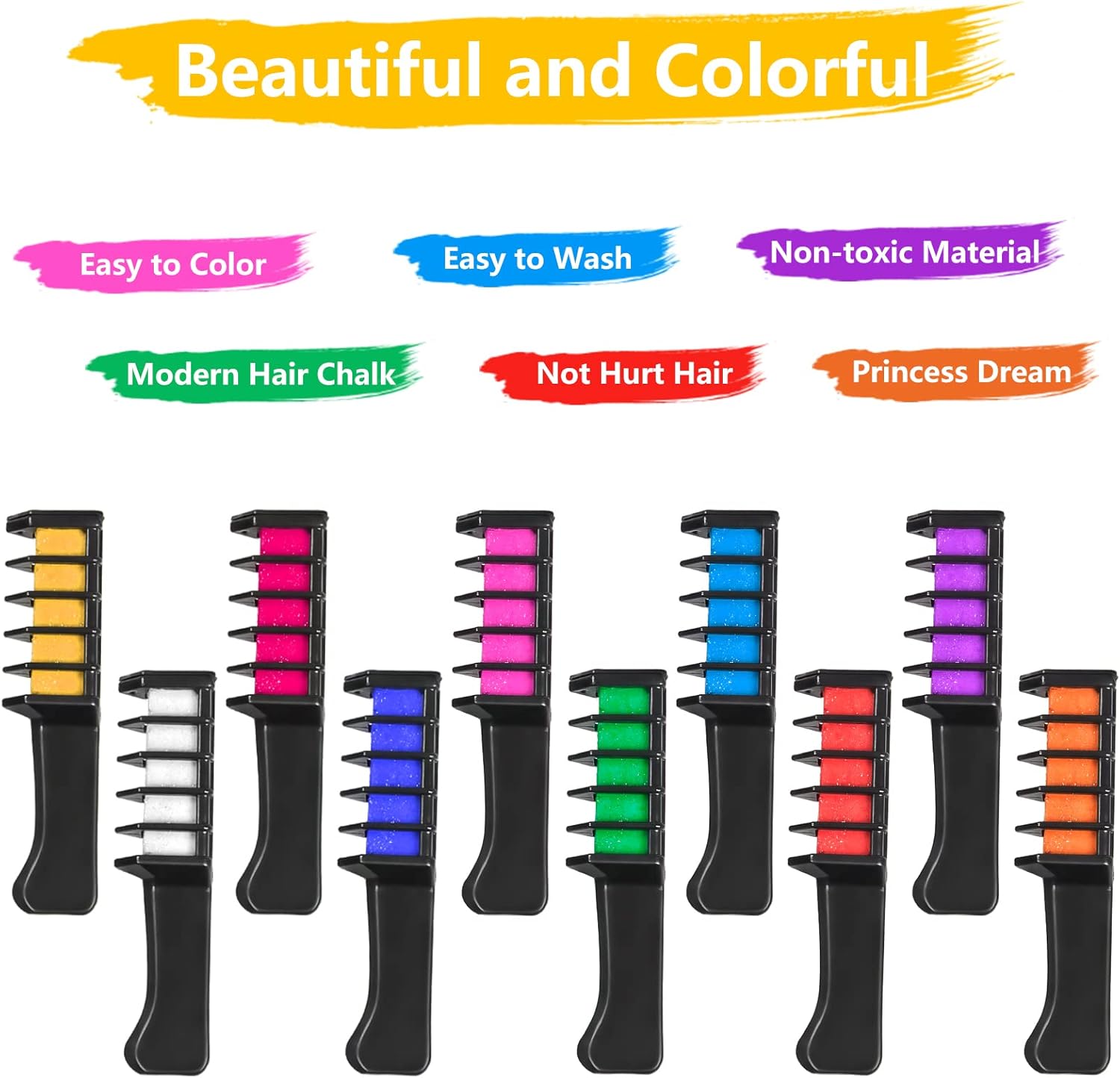 Great Idea Gifts for Girls: Hair chalk combs not only can be a gift in the festival party, such as Children’s Day, Easter, Halloween, Thanksgiving, Christmas, New Year, but also perfect for getting a temporary hair color on birthday, wedding, club, cosplay,engagement, classroom rewards, etc.