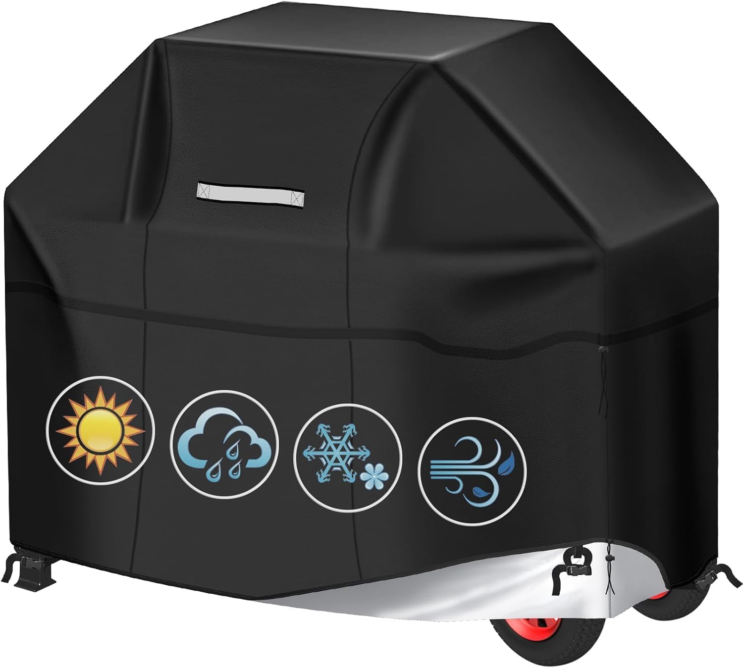 【Perfect Size Fits Most Brands】 — BBQ cover fit most grill brands.The dimension of gas grill BBQ covers is 57 x 24 x 45 inch/ 145 x 61 x 112 cm. Note: The coverage depends on the size of the Grill, especially the shape & depth of the Grill. Please Choose a LARGER COVER than the Grill to Ensure that Your Grill is Fully Covered and Protected. (Please check your grill dimensions for proper fit before order)