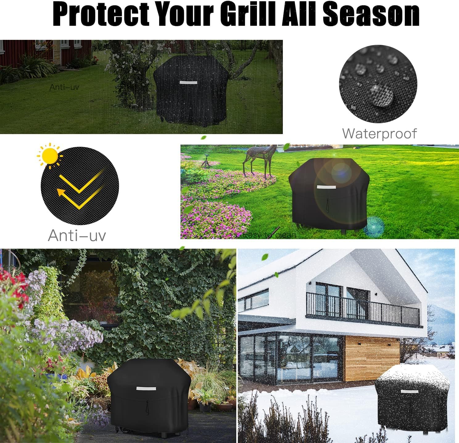 【Heavy Duty Barbecue Covers】– Our waterproof bbq cover is very strong use upgrade ripstop waterproof 210D Oxford fabric material, The fabric is made with double stitching and ripstop test. Premium high density fabric material guarantees the cover to be Water-resistant, UV resistant, windproof, dustproof, anti-scratch and all weather resistant, fits perfectly for daily use in every season.