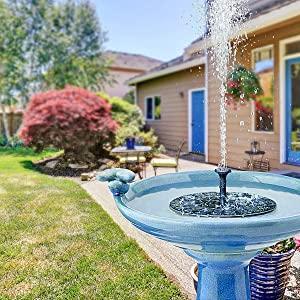 Solar fountain for outside: Solar fountain is a landscape fountain product, solar powered pump with monocrystalline solar panel, no external batteries or electricity needed. Automatically pumps water in a few seconds in the sun. A really environmentally friendly solar pump.